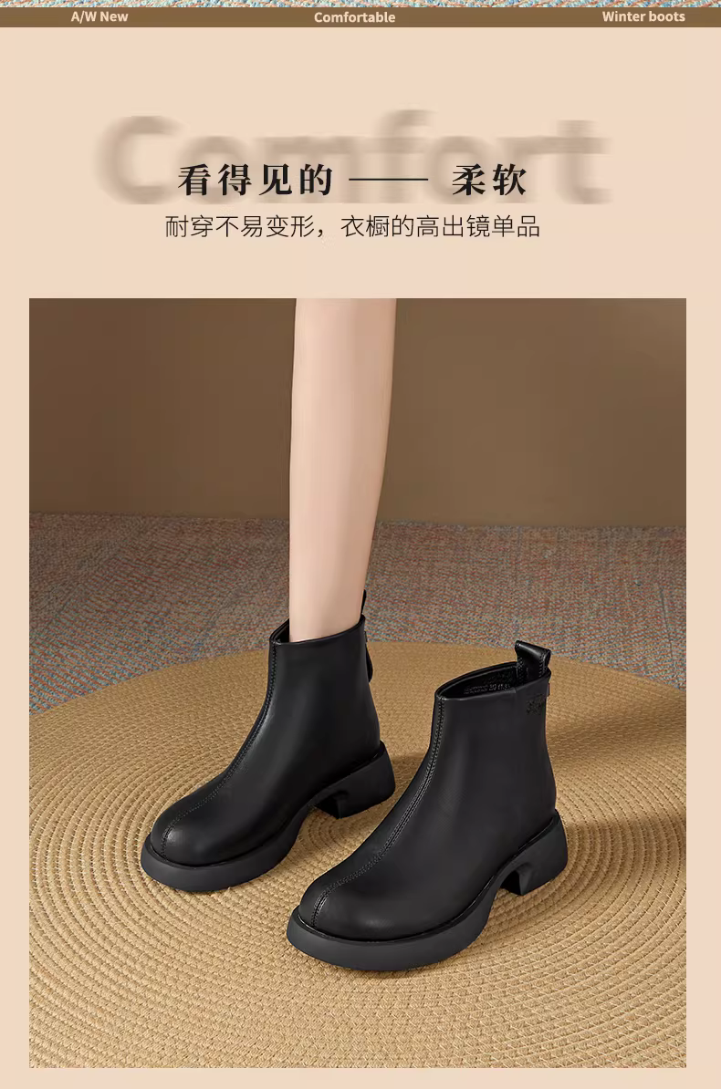 Giày bốt ngắn kiểu Anh Dadong màu đen dành cho nữ, mẫu mới thu đông 2025, đế dày, gót vuông, kiểu dáng ôm sát, kiểu Martin.