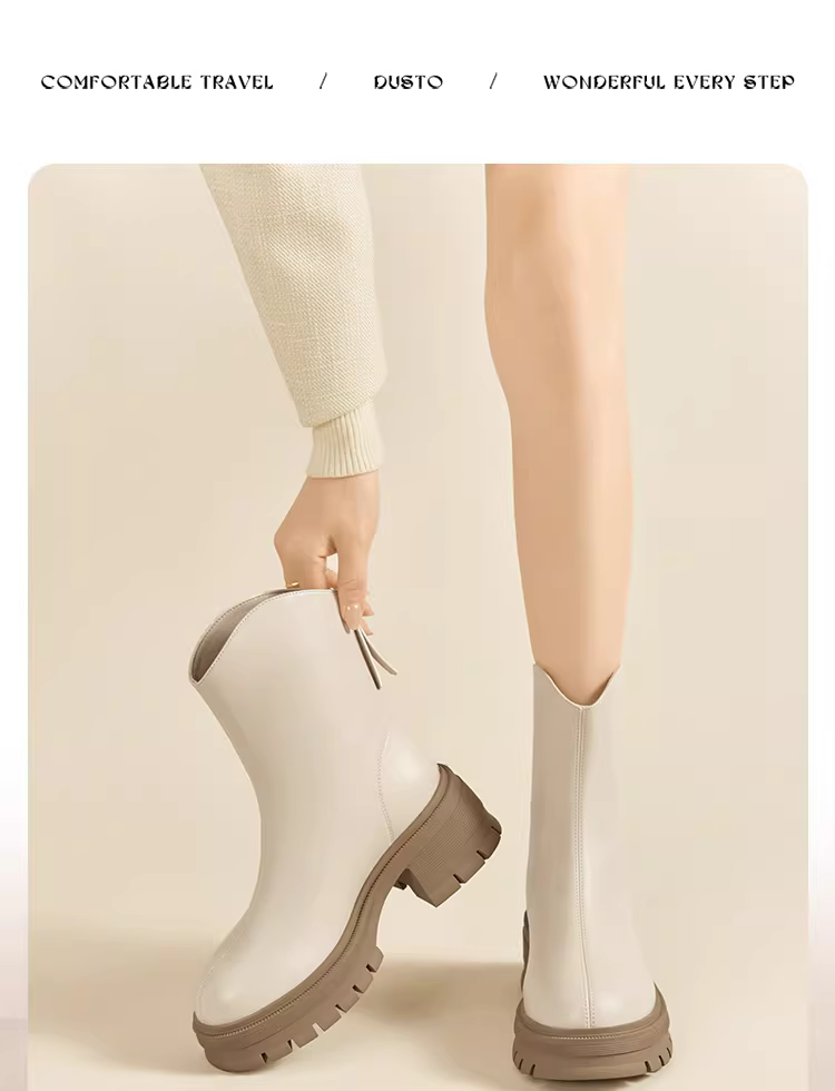 - Giày bốt ngắn kiểu Pháp màu trắng Dadong dành cho nữ 2025, mẫu mới thu đông, gót dày, đế dày, kiểu Chelsea, ôm chân, kiểu Martin