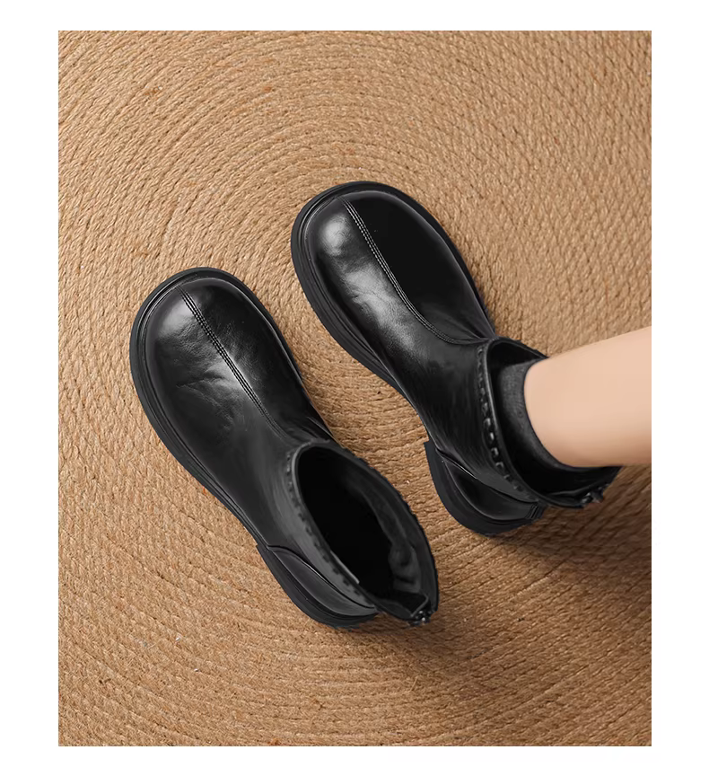 - Giày bốt ngắn lót lông Daphne dành cho nữ 2025 kiểu Anh mới mùa đông, kiểu Martin giữ ấm, đi tuyết, đế dày, màu đen