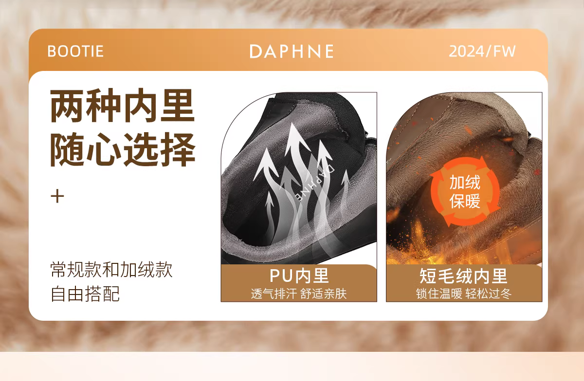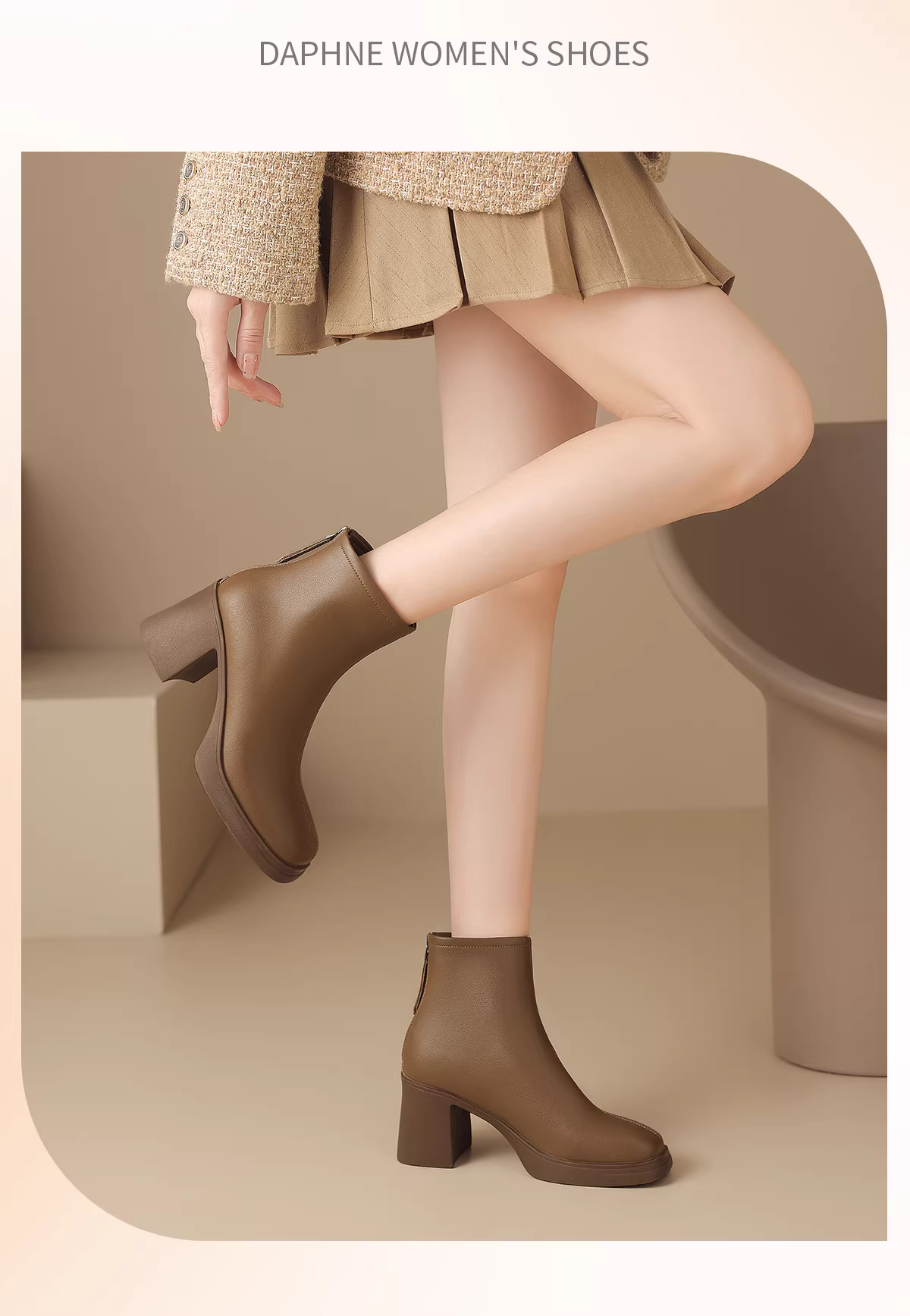 Giày bốt ngắn lót lông Daphne dành cho nữ, mẫu mới thu đông 2025, giày cao gót mũi vuông, kiểu Martin, giày mùa đông đế thô, giày mẹ