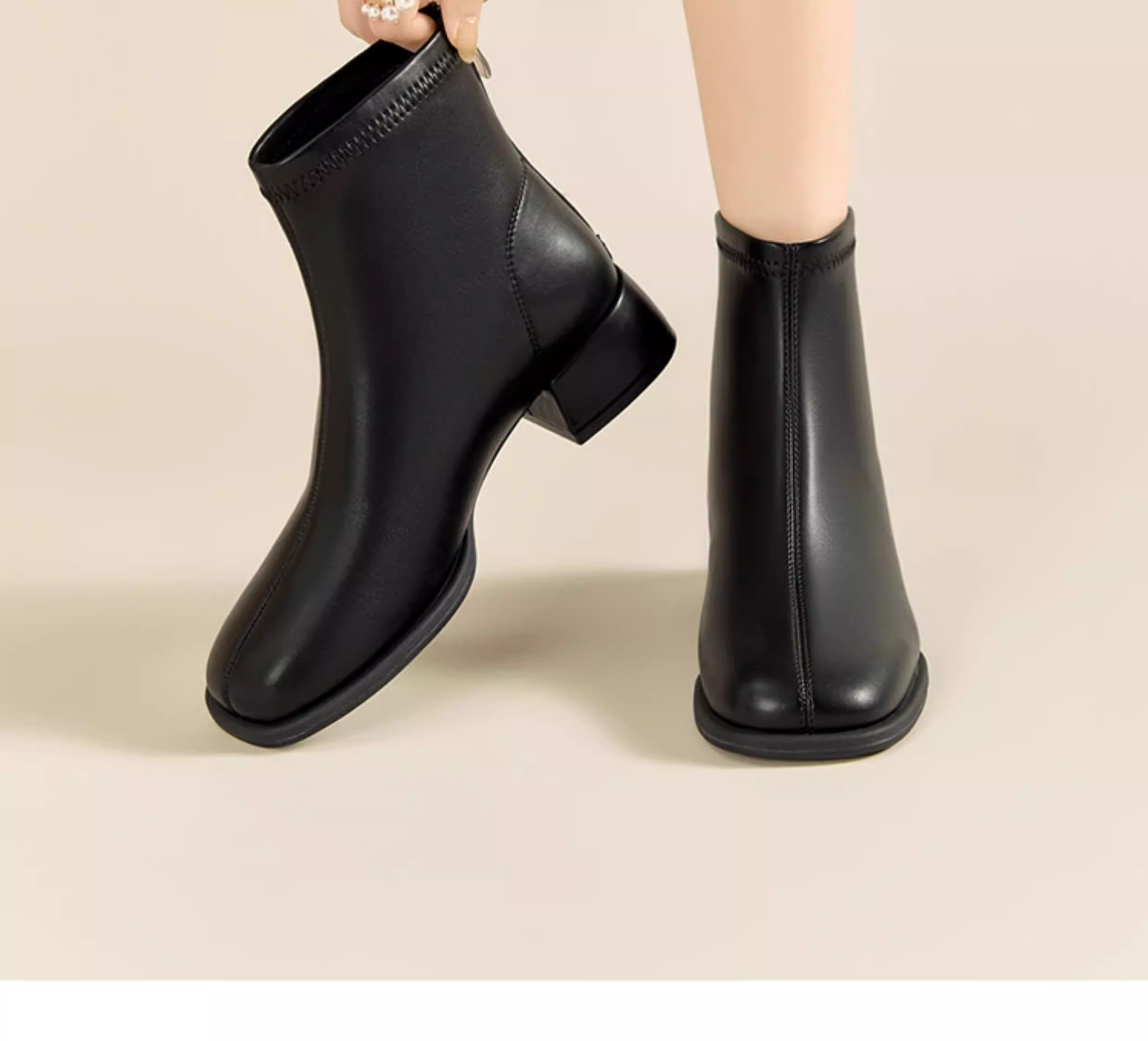 - Giày bốt ngắn màu đen Dadong dành cho nữ 2025, kiểu Chelsea mùa thu đông mới, phong cách Hàn Quốc, kiểu ankle boots, giày bốt ôm sát, giày bốt cao gót