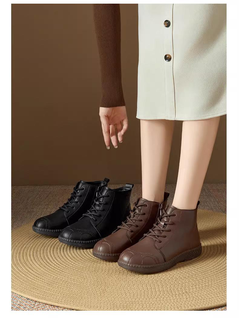 - Giày bốt ngắn màu đen Dadong dành cho nữ 2025, kiểu mới mùa đông, lót lông giữ ấm, giày bốt tuyết bằng cotton, giày bốt da nữ, giày bốt Martin