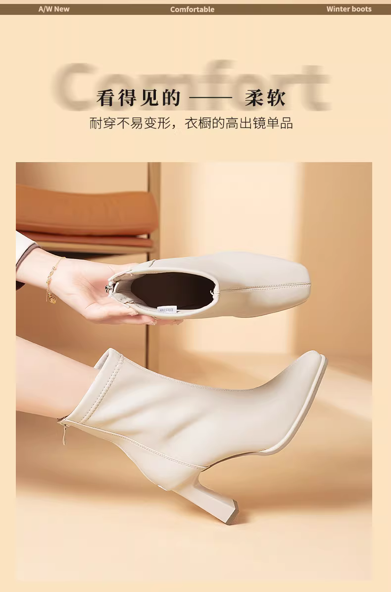 - Giày bốt ngắn màu đen Dadong dành cho nữ, mẫu mới thu đông 2025, mũi vuông, gót dày, gót cao, kiểu Chelsea, ôm chân.