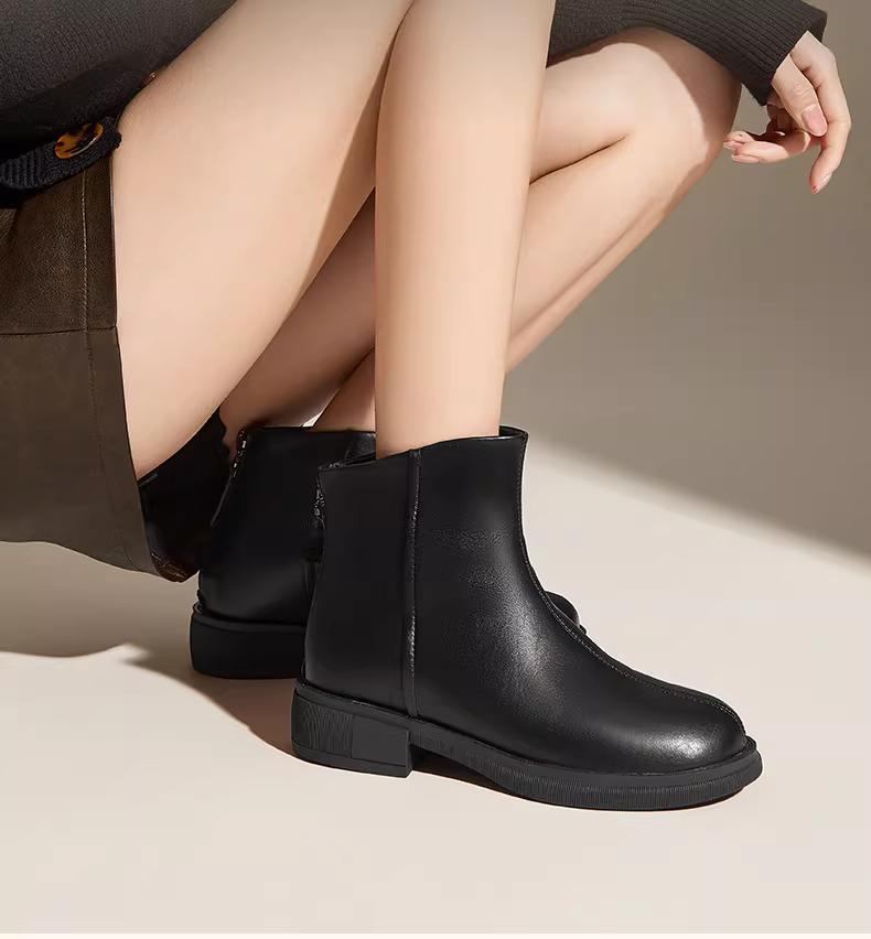 - Giày bốt ngắn màu đen Dadong dành cho nữ, mùa thu đông 2025, kiểu mới đế dày lót lông, giày bốt da nữ, giày Chelsea, giày Martin.
