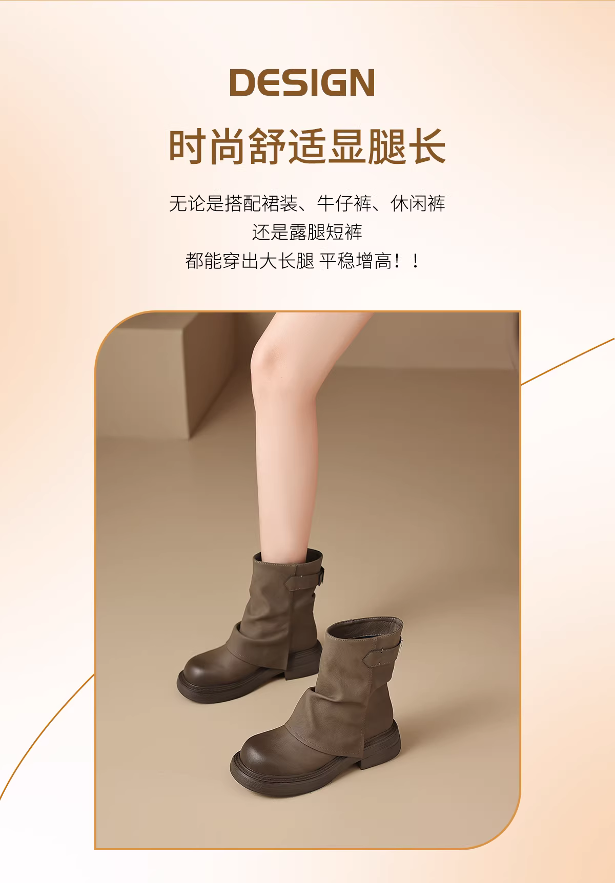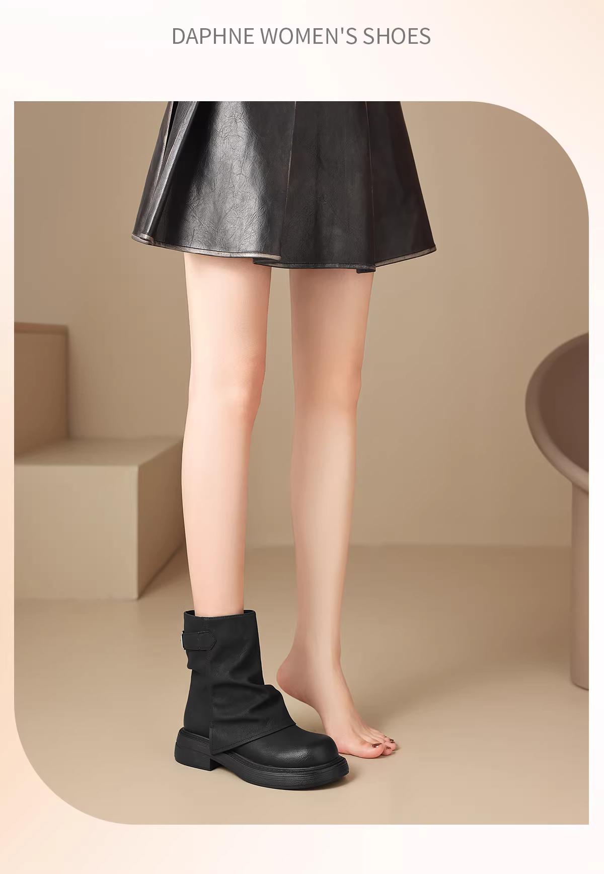 - Giày bốt ngắn màu đen Daphne dành cho nữ, giày bốt đế dày lót lông cừu mùa đông, kiểu dáng mới 2025, kiểu dáng ống quần xếp tầng, kiểu Anh, kiểu Martin.