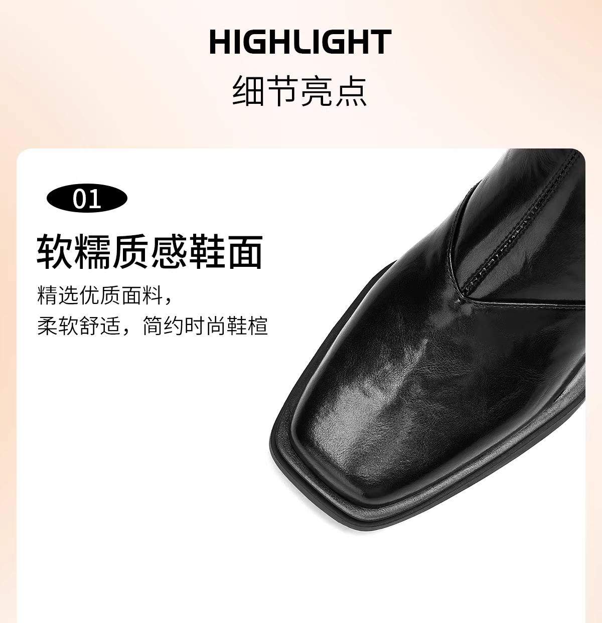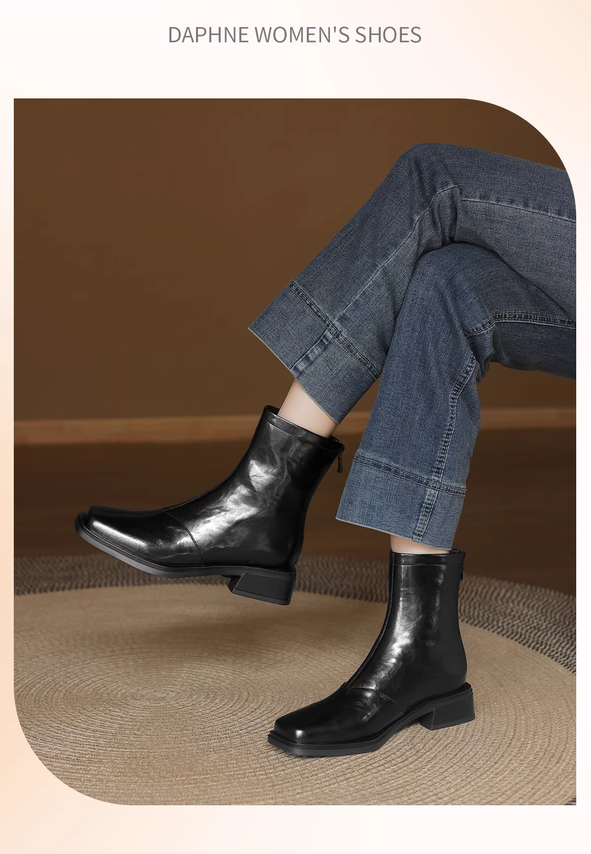 - Giày bốt ngắn màu đen Daphne dành cho nữ, giày bốt Martin mùa đông, giày bốt mũi vuông dáng ôm, giày bốt mới 2025, giày Chelsea lót lông cừu.