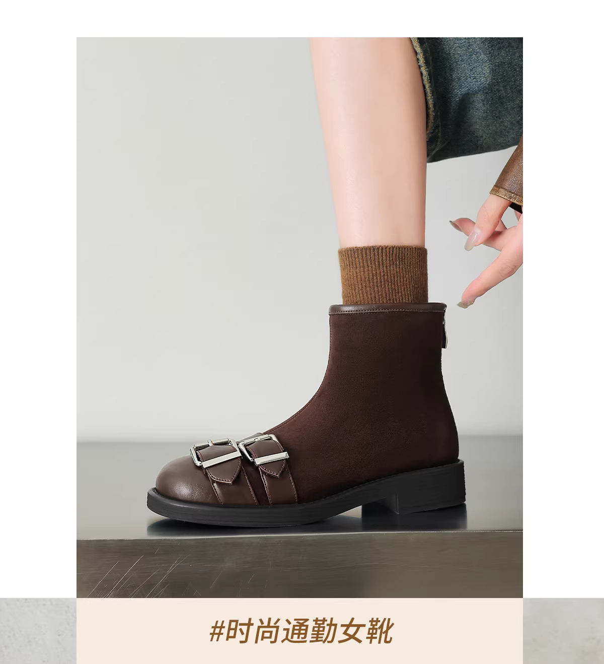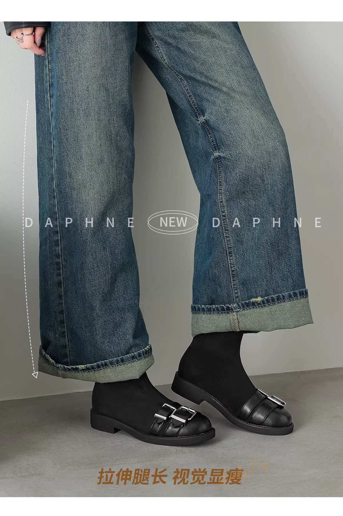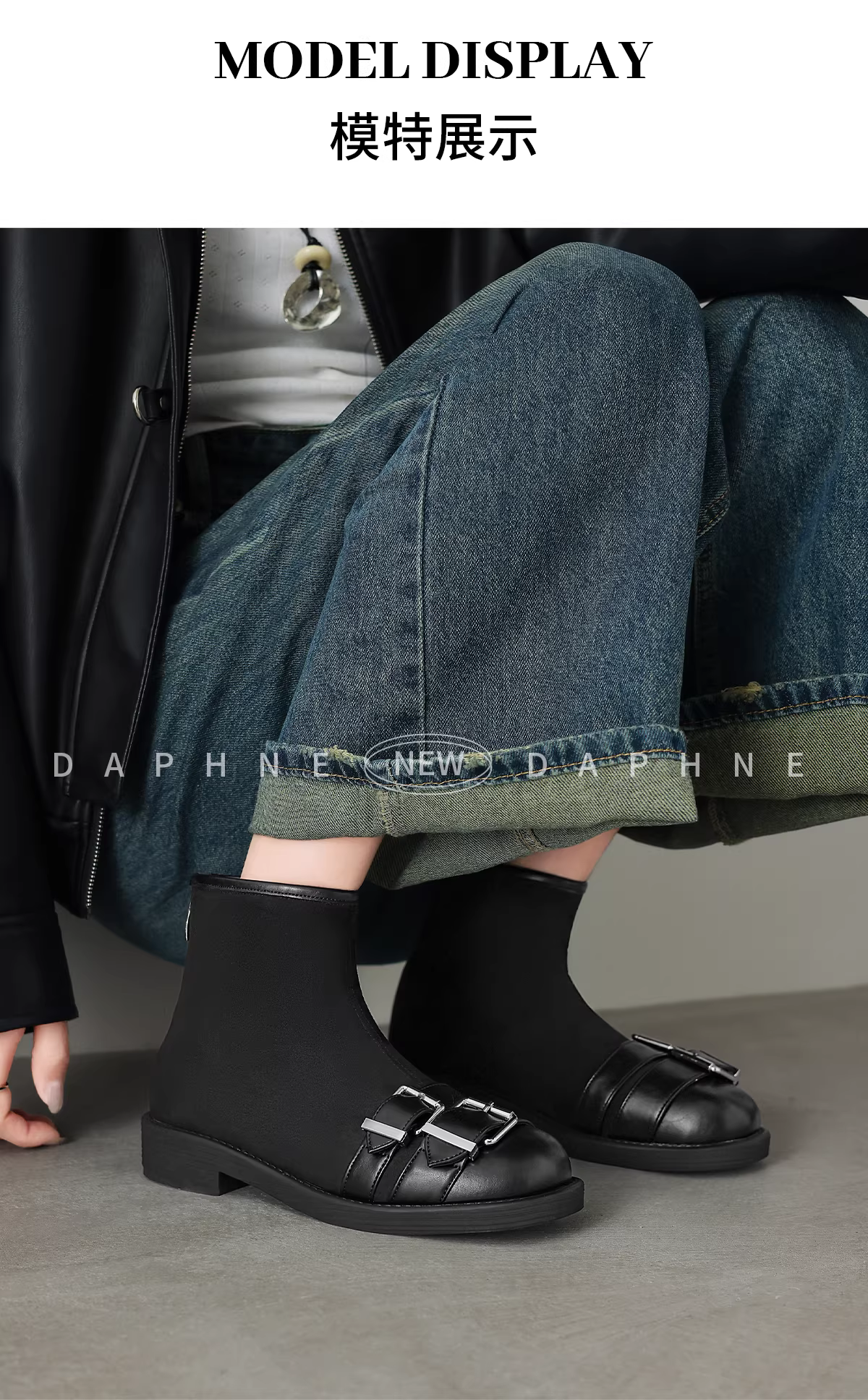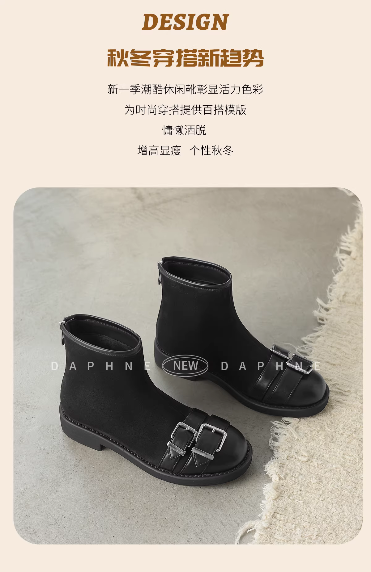 - Giày bốt ngắn màu đen Daphne dành cho nữ, kiểu mới mùa đông 2025, đế bằng, lót lông cừu, kiểu Martin, bốt ôm sát, bốt da phong cách biker.