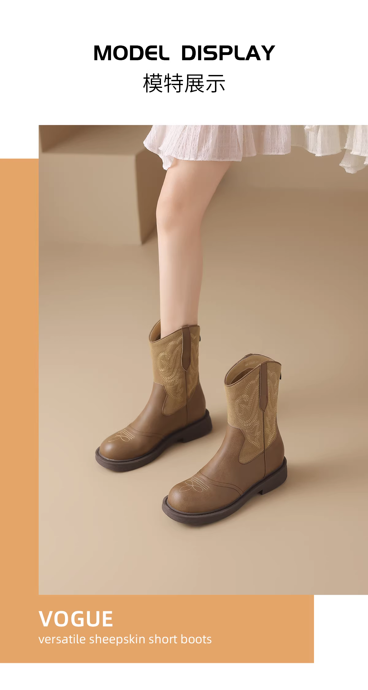 Giày bốt ngắn màu nâu Daphne dành cho nữ 2025, kiểu mới, đi du lịch Tân Cương, đế dày, kiểu cao bồi miền Tây, kiểu Martin.