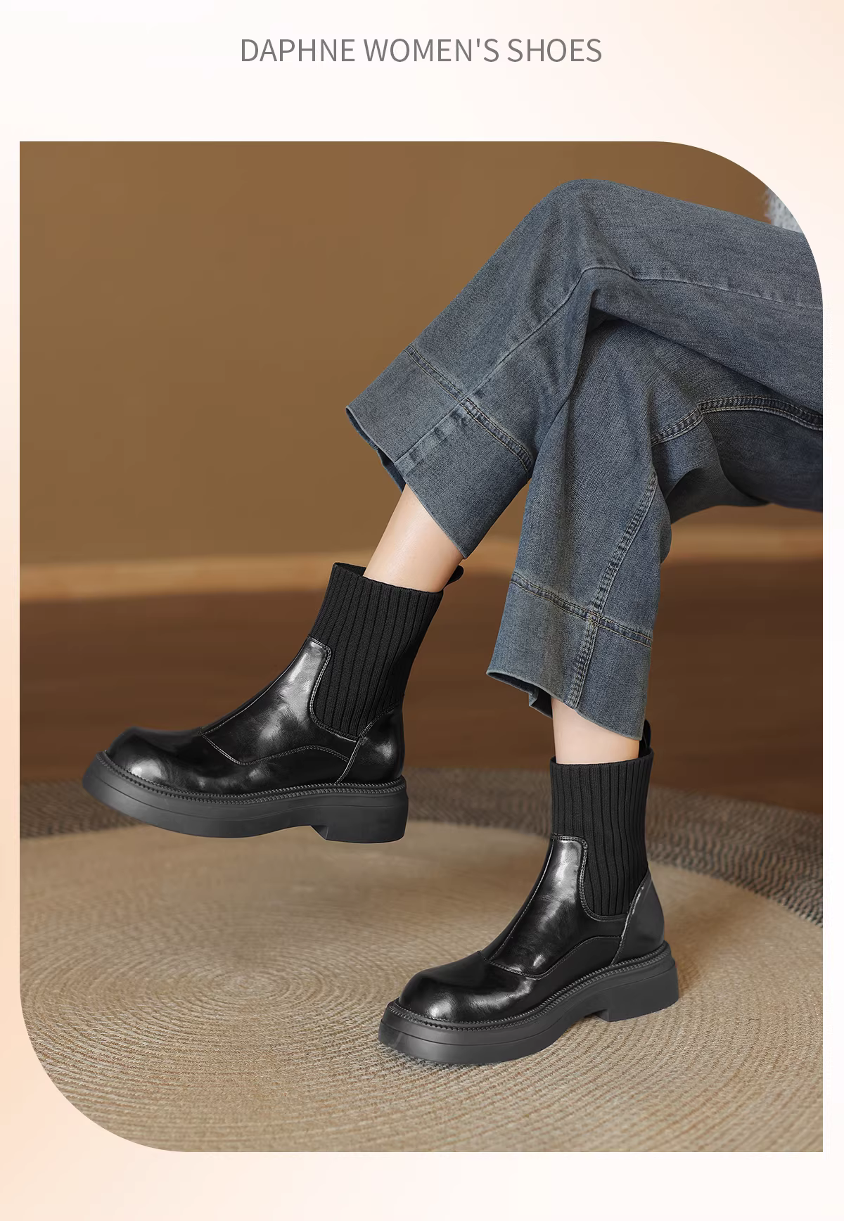 Giày bốt ngắn màu nâu Daphne dành cho nữ, kiểu Chelsea mùa đông 2025, kiểu retro mới, chất liệu thun co giãn, đế dày, kiểu Martin.