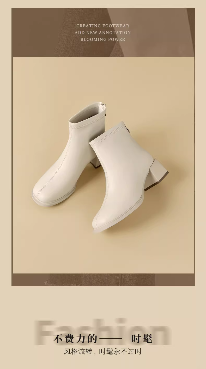 - Giày bốt ngắn màu trắng Dadong dành cho nữ 2025, mẫu mới thu đông, lót lông, gót dày, cao gót, mũi vuông, kiểu Chelsea, giày thời trang