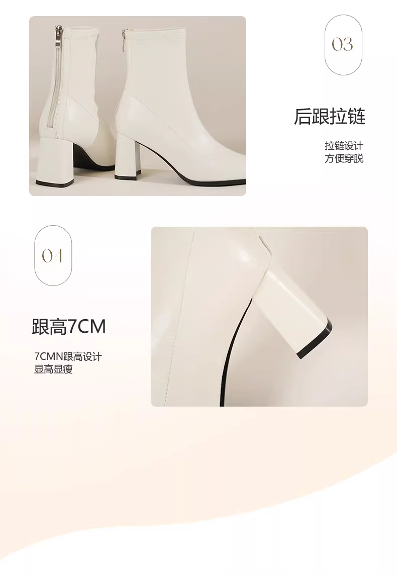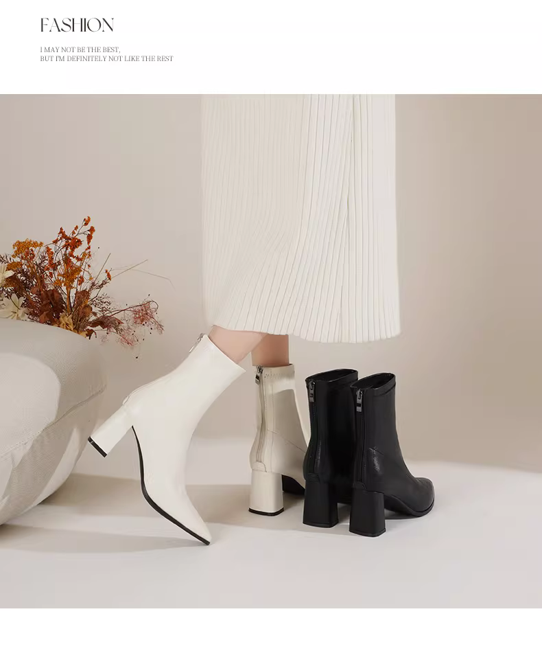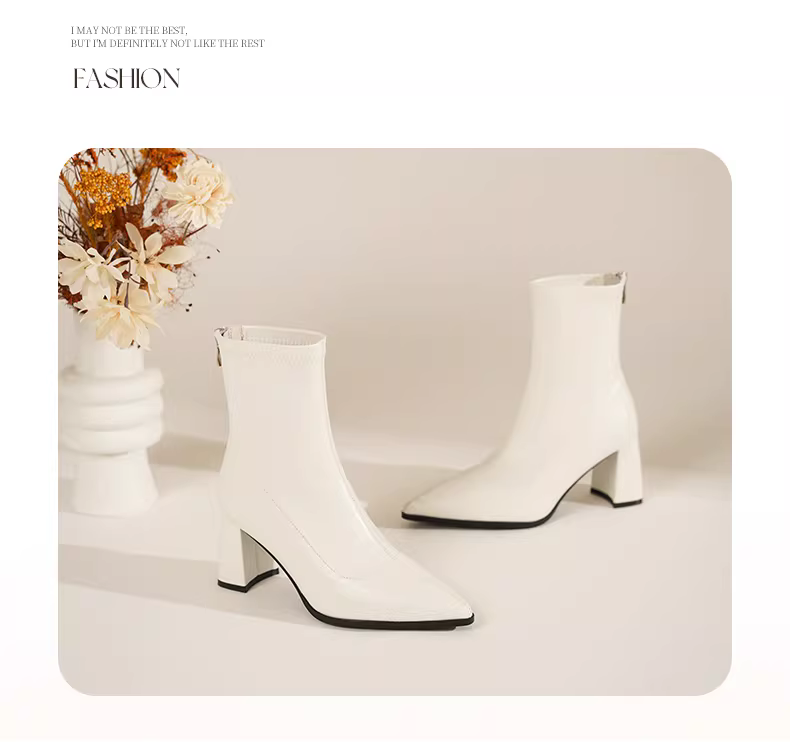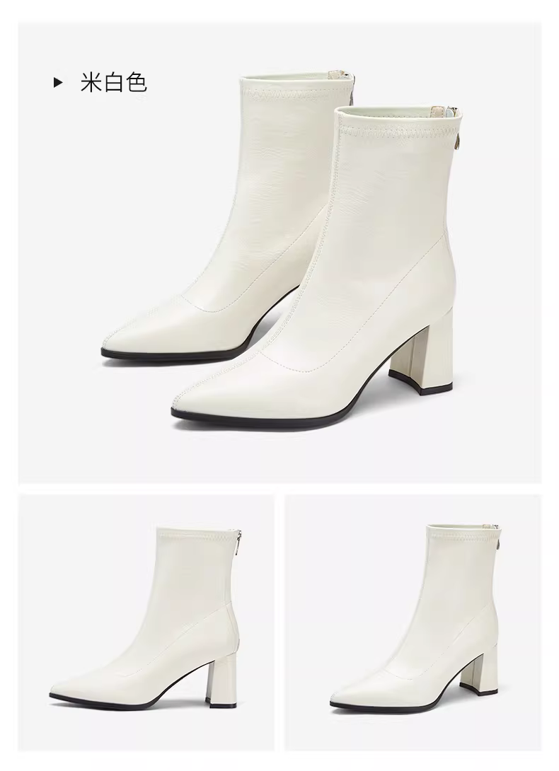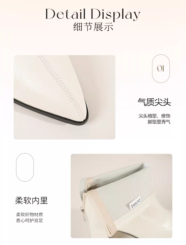 - Giày bốt ngắn màu trắng Daphne dành cho nữ, mẫu mới thu đông 2025, kiểu Chelsea đa năng, ôm chân, mũi nhọn, gót cao.