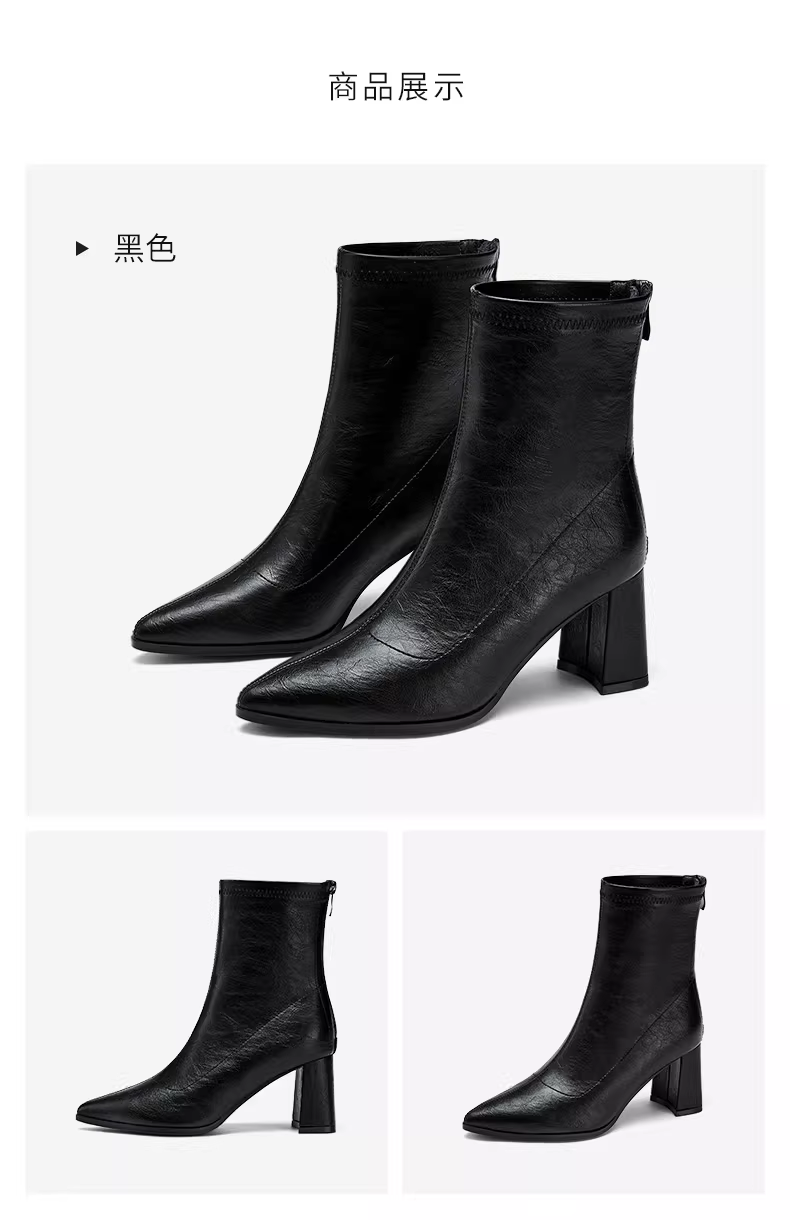 Giày bốt ngắn màu trắng Daphne dành cho nữ, mẫu mới thu đông 2025, kiểu Chelsea đa năng, ôm chân, mũi nhọn, gót cao.