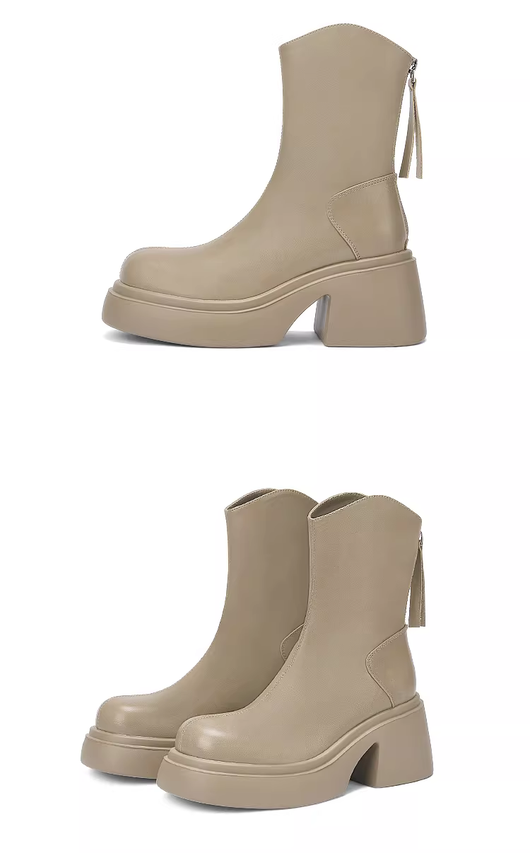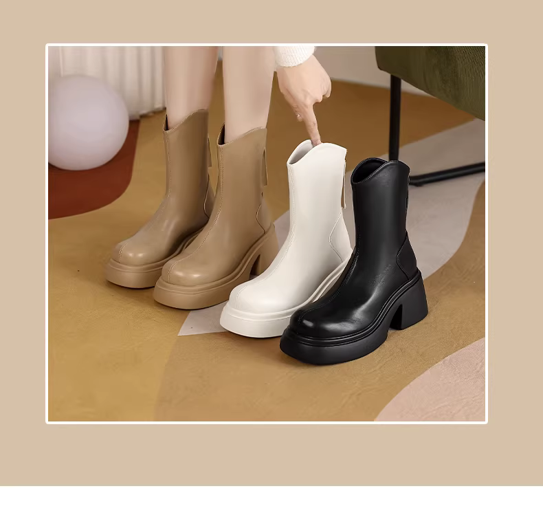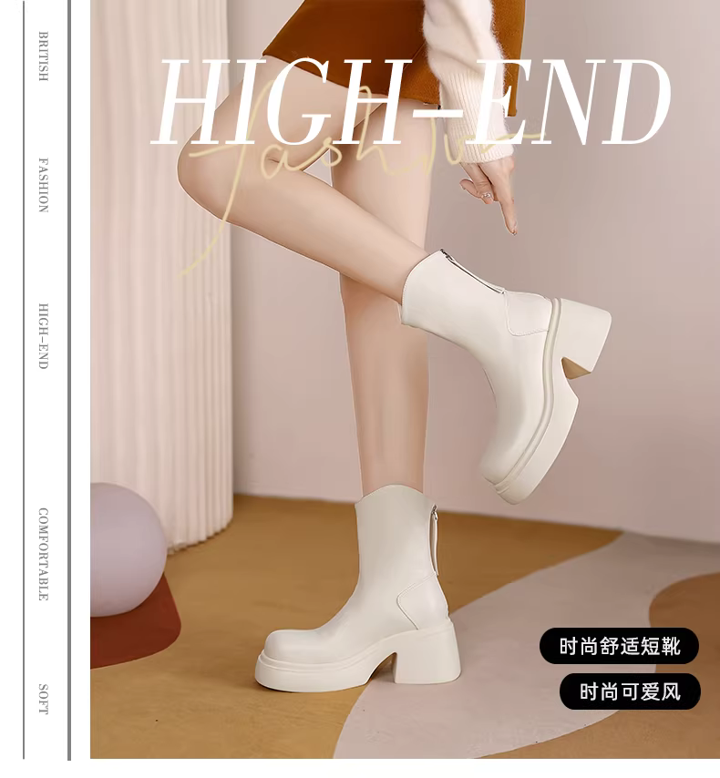 - Giày bốt ngắn màu trắng Daphne dành cho nữ mùa thu đông 2025, kiểu mới, đế dày, tăng chiều cao, kiểu Martin, phong cách Pháp, gót dày, ôm chân.