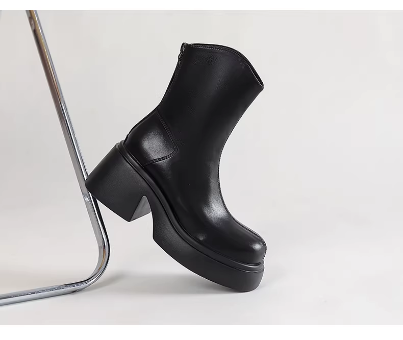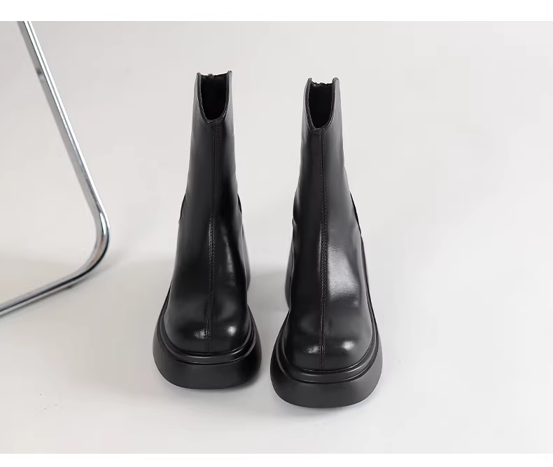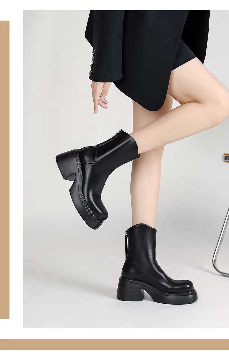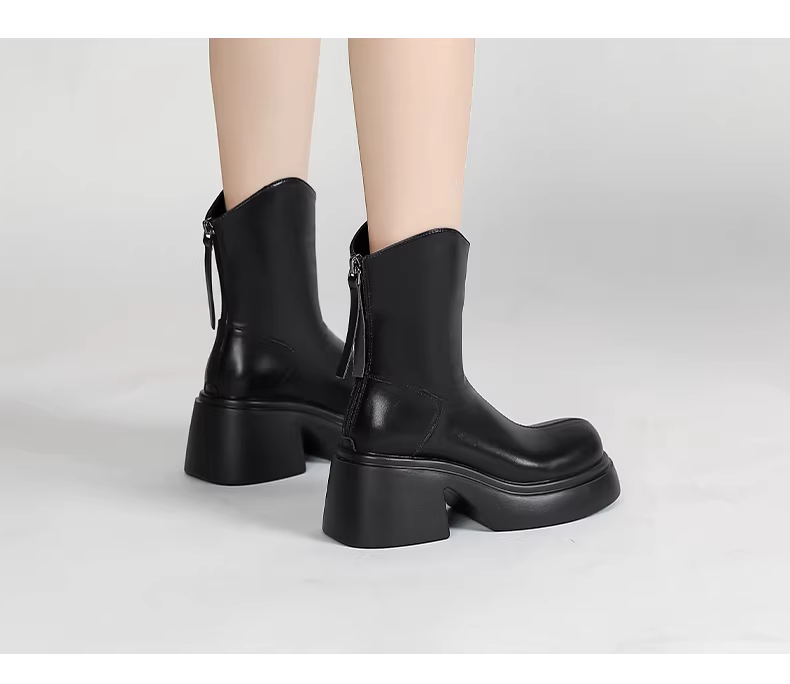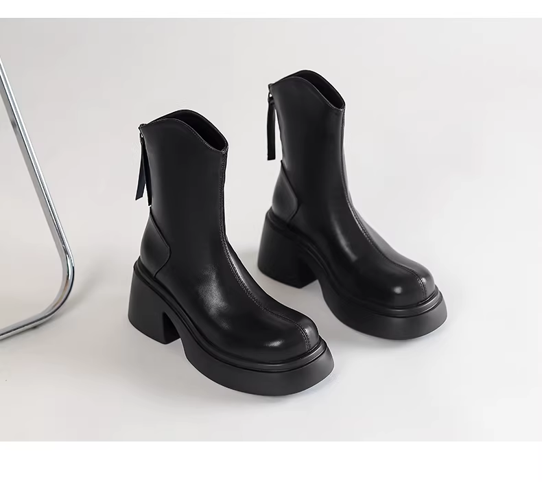 Giày bốt ngắn màu trắng Daphne dành cho nữ mùa thu đông 2025, kiểu mới, đế dày, tăng chiều cao, kiểu Martin, phong cách Pháp, gót dày, ôm chân.