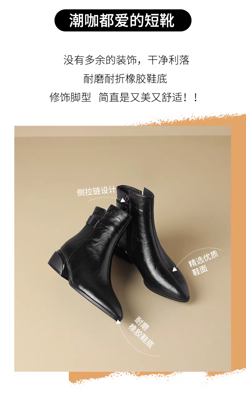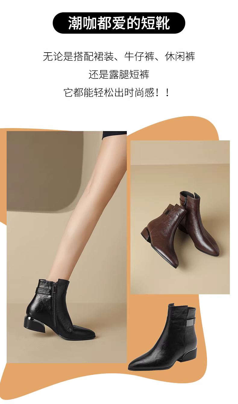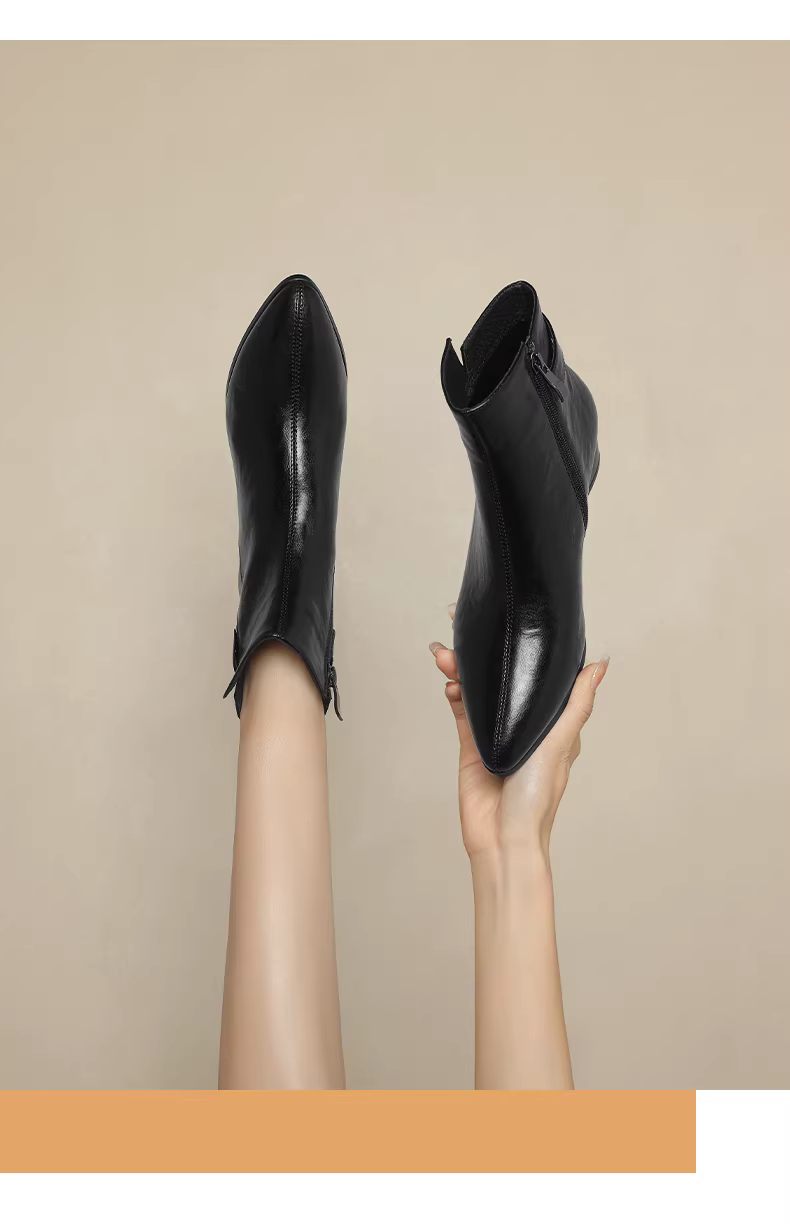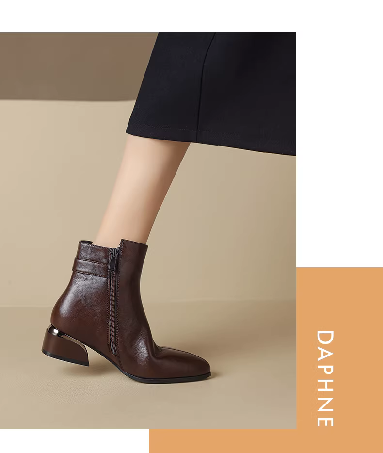 Giày bốt ngắn mùa đông mới 2025 của mẹ Daphne dành cho nữ, chất liệu lông mềm, mũi nhọn, giày da nữ, gót dày, kiểu Martin.