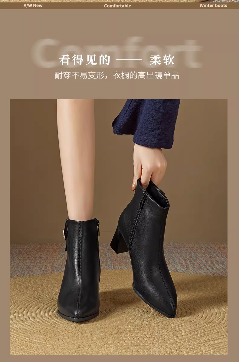 - Giày bốt ngắn mũi nhọn màu đen Dadong dành cho nữ 2025, mẫu mới mùa thu, kiểu Chelsea, giày cao gót, giày ôm sát, giày cao gót