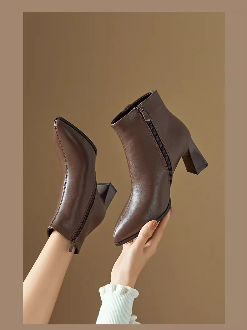 - Giày bốt ngắn mũi nhọn màu đen Dadong dành cho nữ, mẫu mới thu đông 2025, gót dày, gót cao, kiểu Chelsea, ôm chân, thời trang.