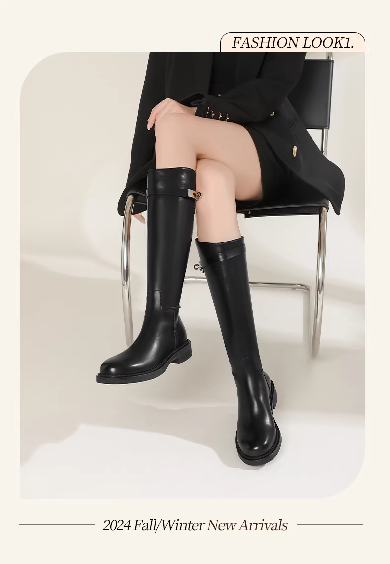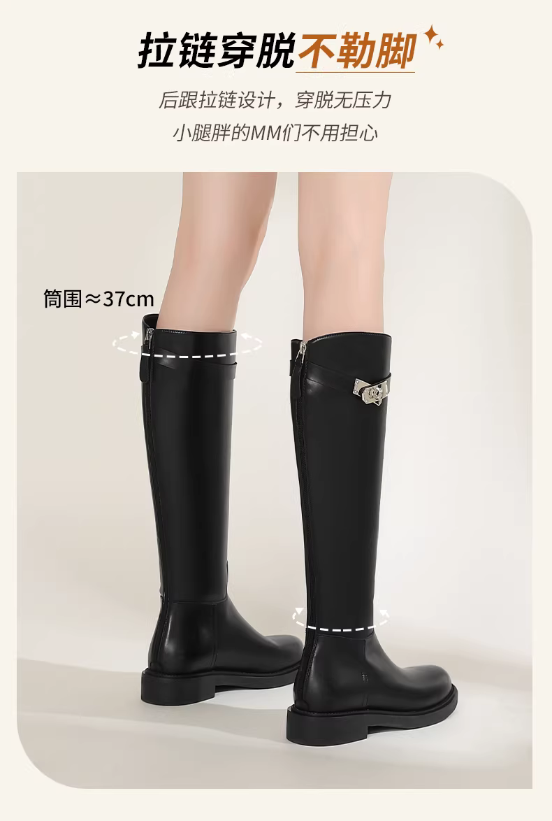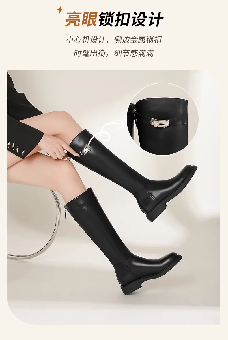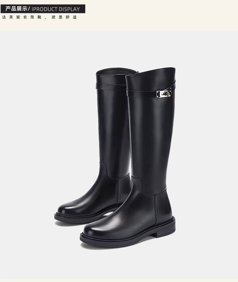 - Giày bốt nữ cao cổ Daphne 2025 mới thu đông, khóa kim loại, kiểu dáng cao cổ, đi cưỡi ngựa, trên gối, dành cho nữ