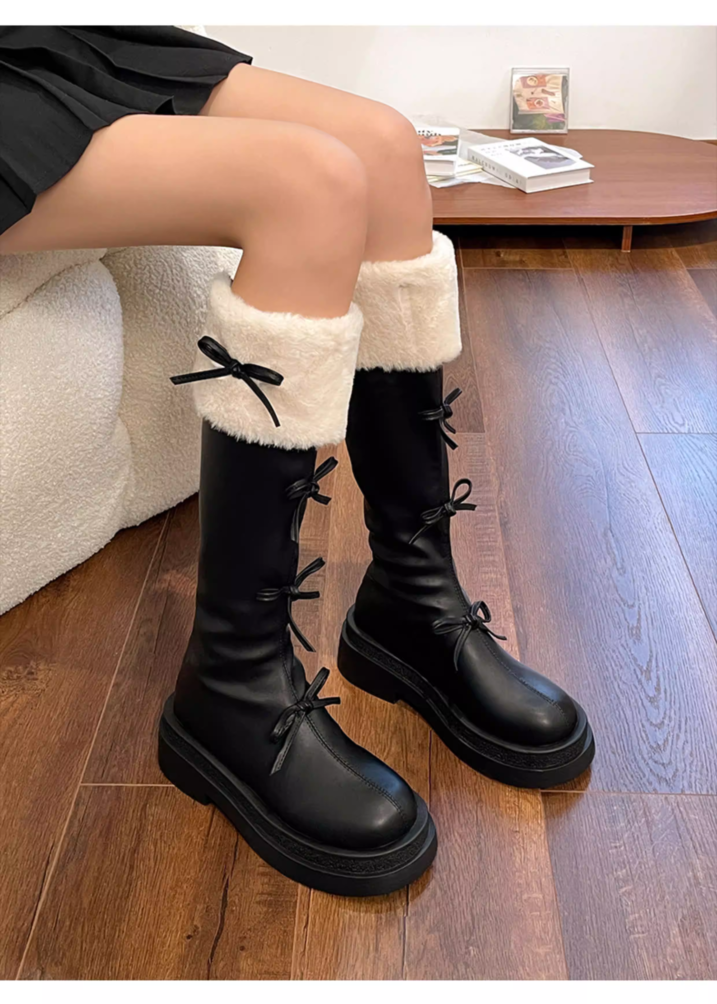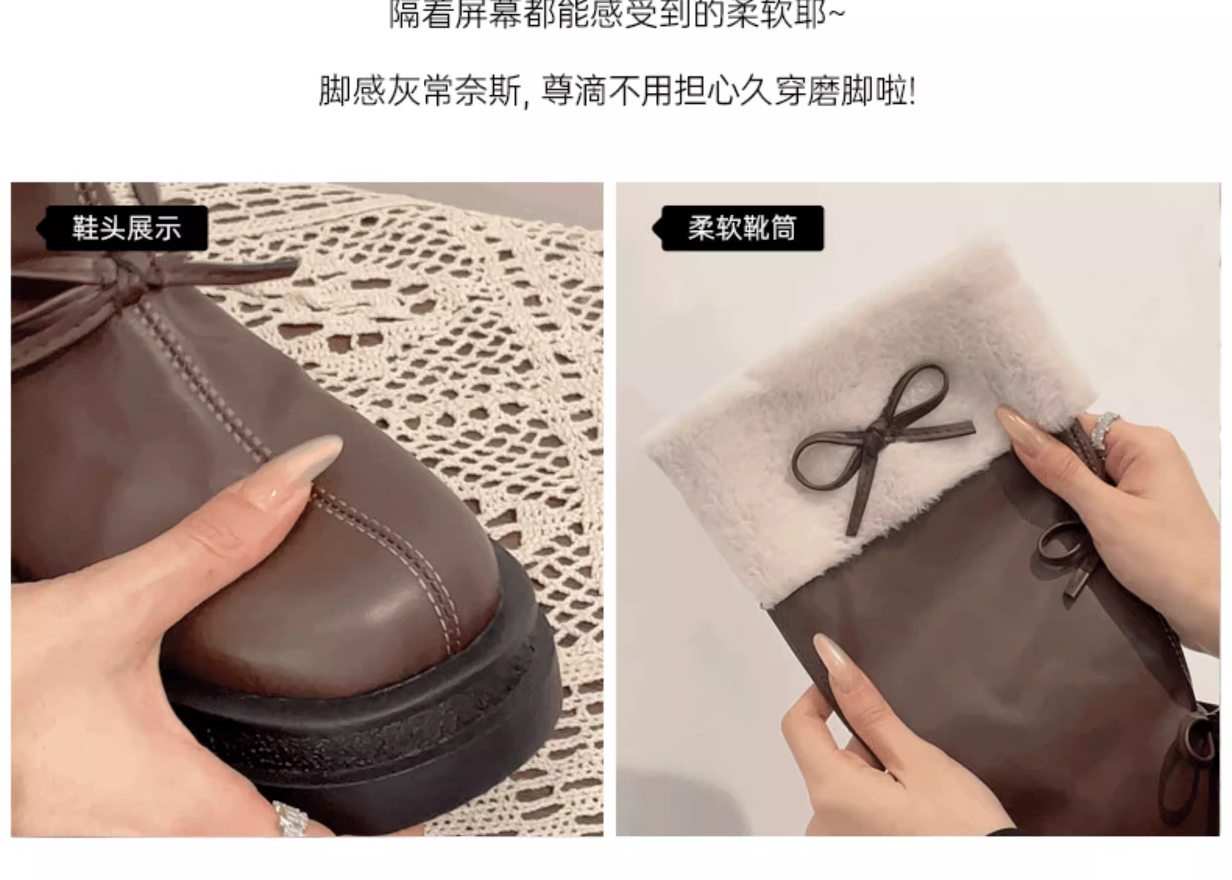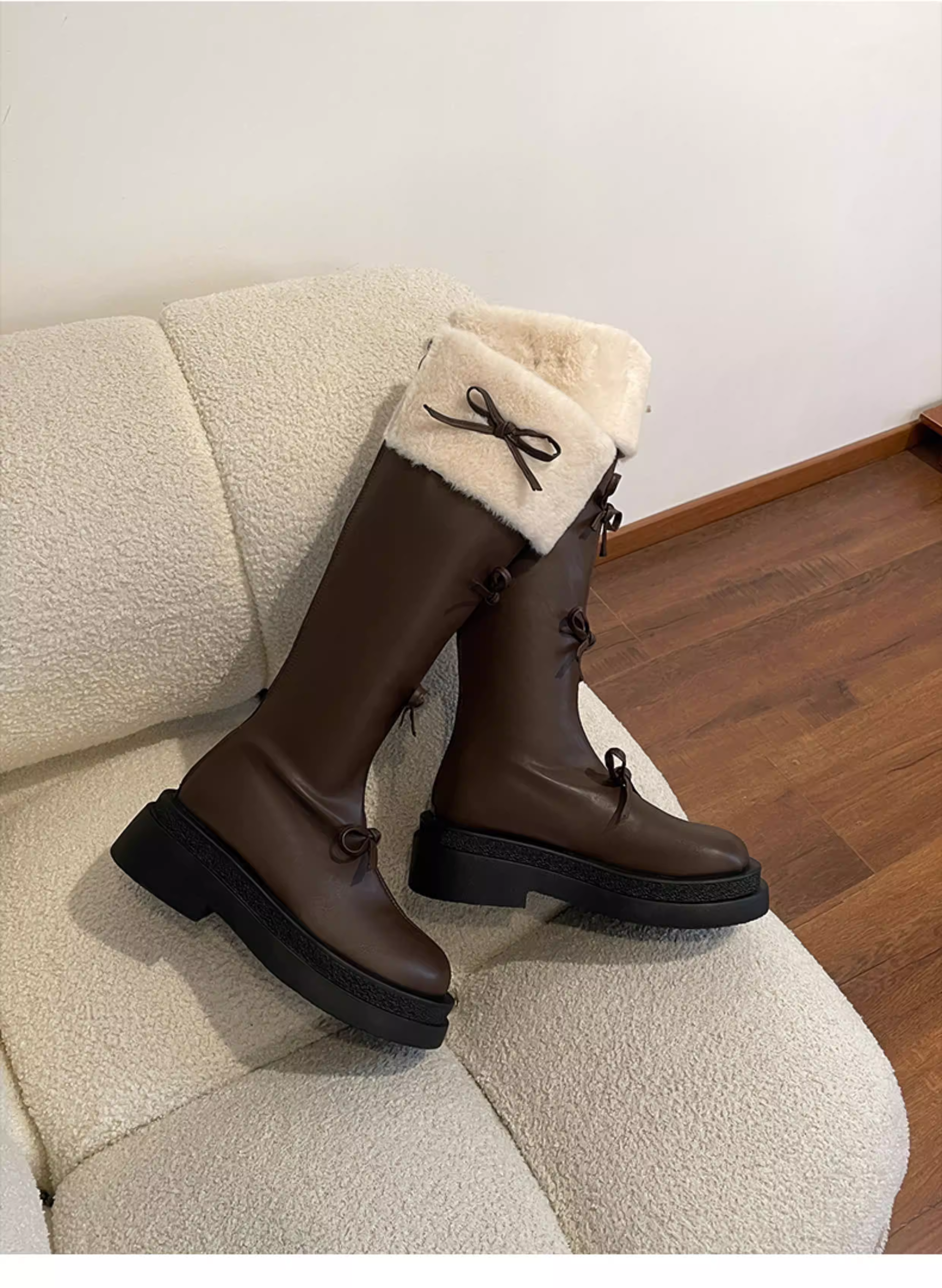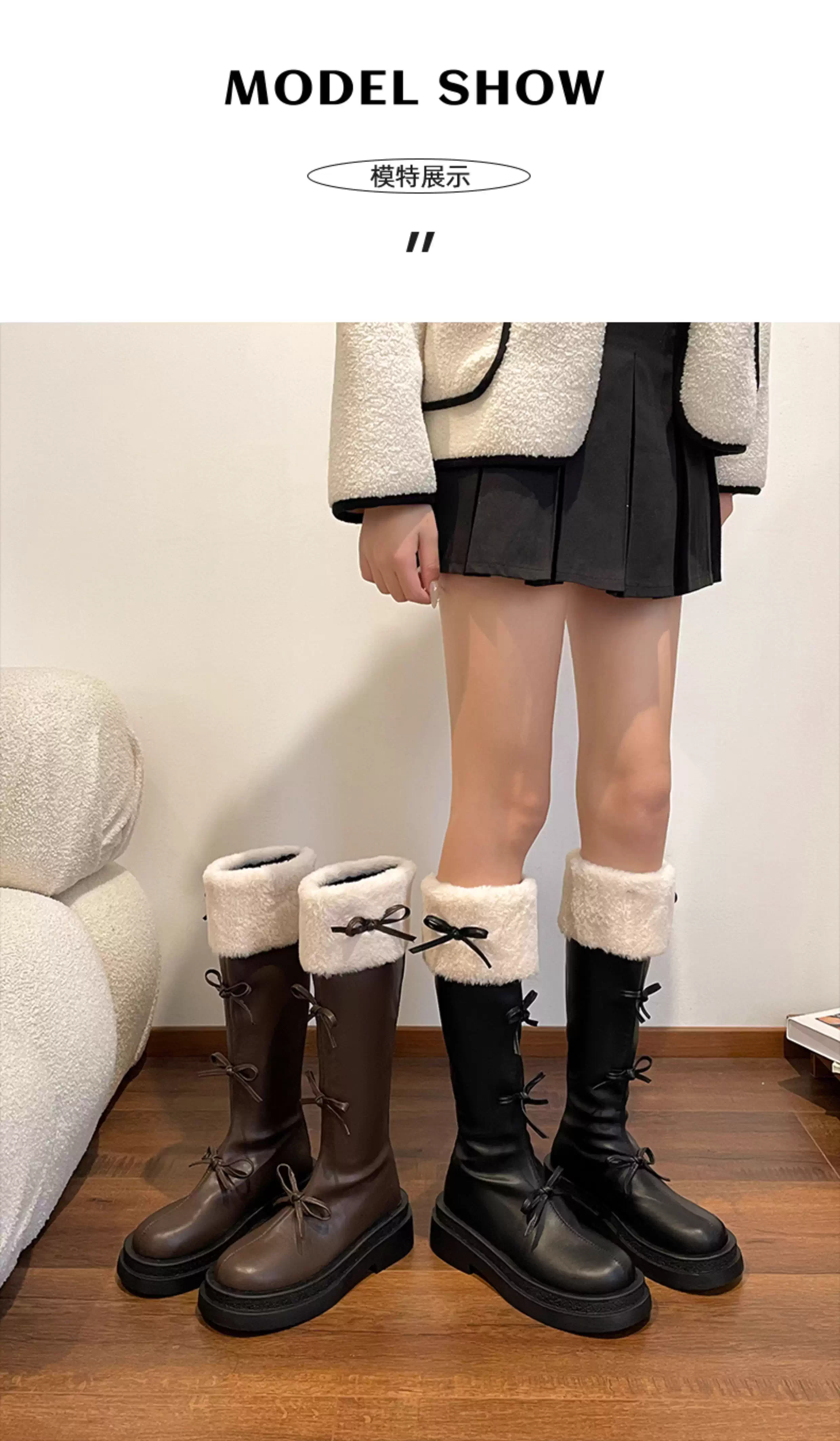 - Giày bốt nữ cao cổ lót lông phong cách Pháp đế dày màu nâu, kiểu dáng cổ điển, mùa thu đông 2025, dành cho người nhỏ nhắn