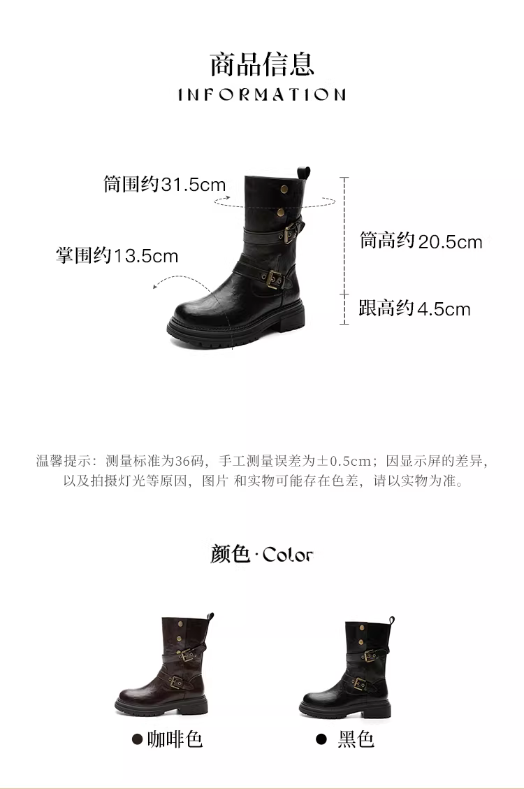 - Giày bốt nữ cao đến giữa bắp chân, kiểu mới thu đông 2025, màu đen, đế dày, gót thô, kiểu Martin, kiểu ôm sát, kiểu đi cưỡi ngựa.