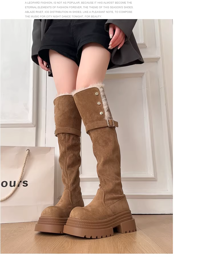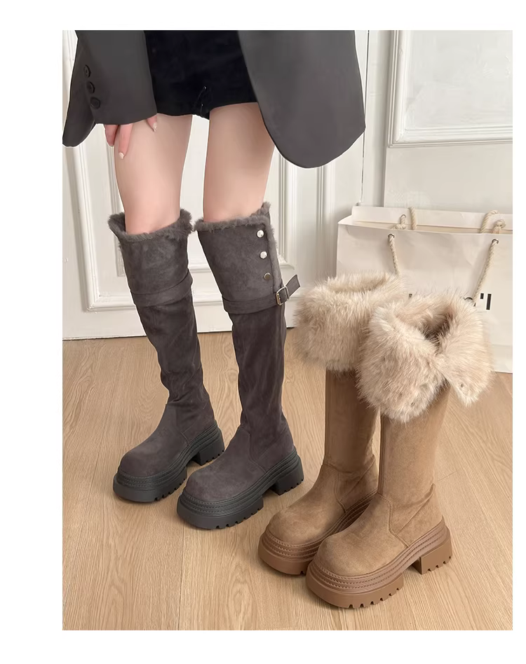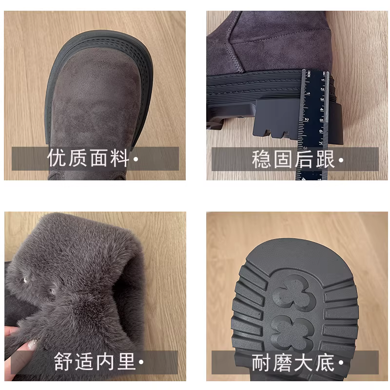 - Giày bốt nữ cổ cao giữ ấm đế dày mùa đông 2025 mới, lót lông cừu dày dặn, chất liệu len cotton