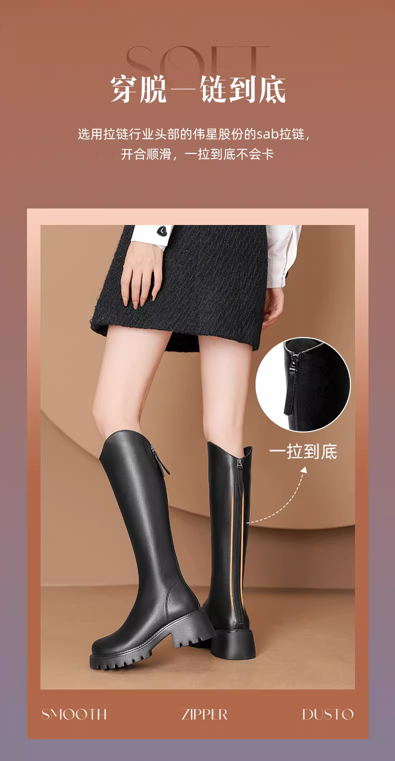 - Giày bốt nữ cỡ lớn, ống rộng, mùa thu đông 2025, kiểu mới màu đen, nhẹ, đế dày, bốt dài dành cho nữ.