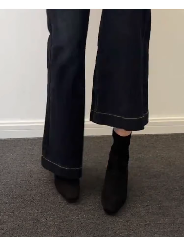 - Giày bốt nữ da lộn kiểu cổ điển, mũi vuông, khóa kéo sau, gót wedge, kiểu dáng đơn giản, thanh lịch, thời trang, cổ ngắn.
