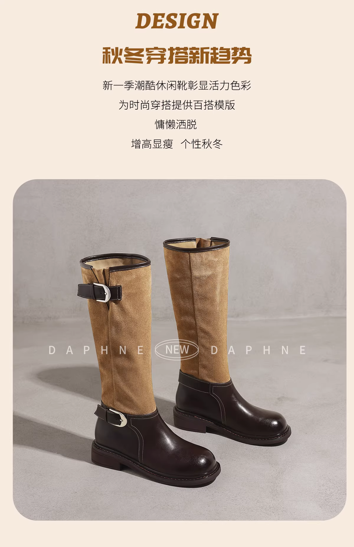 - Giày bốt nữ Daphne cao cổ mùa đông 2025 kiểu mới, bốt Martin phối màu, bốt đế bằng, bốt da lộn, bốt đi xe