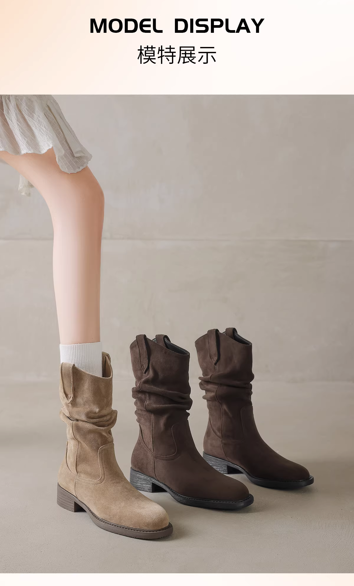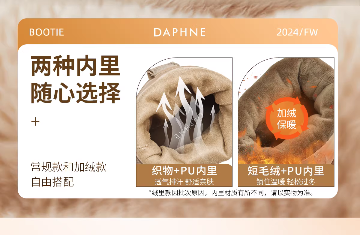 - Giày bốt nữ Daphne cổ ngắn mùa đông 2025 kiểu mới lót lông cao gót dáng ôm ngắn đi phượt kiểu Martin