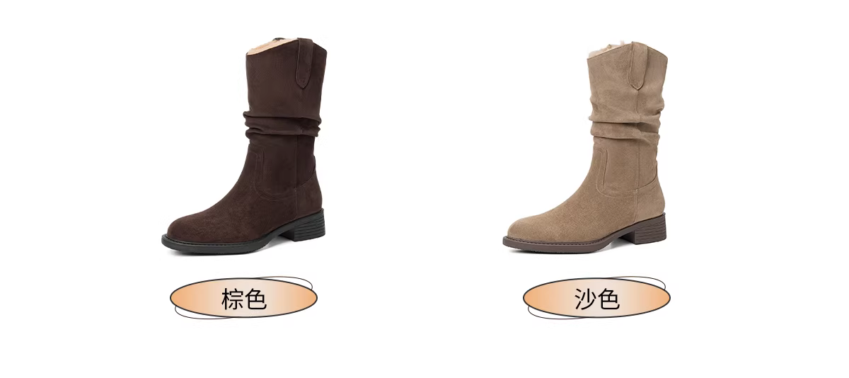 - Giày bốt nữ Daphne lót lông cừu, cao đến giữa bắp chân, mẫu mới thu đông 2025, ấm áp, kiểu dáng phương Tây, bốt ngắn, kiểu Melard, bốt cưỡi ngựa đế cao