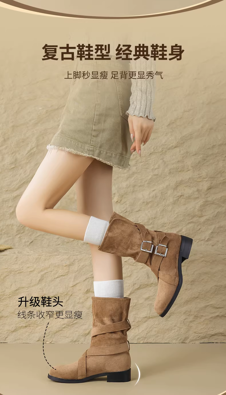 - Giày bốt nữ Daphne Maillard 2025 mới thu đông màu kaki, kiểu ngắn, hai kiểu phối, phong cách retro, kiểu cao bồi miền Tây