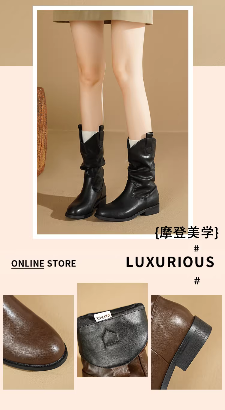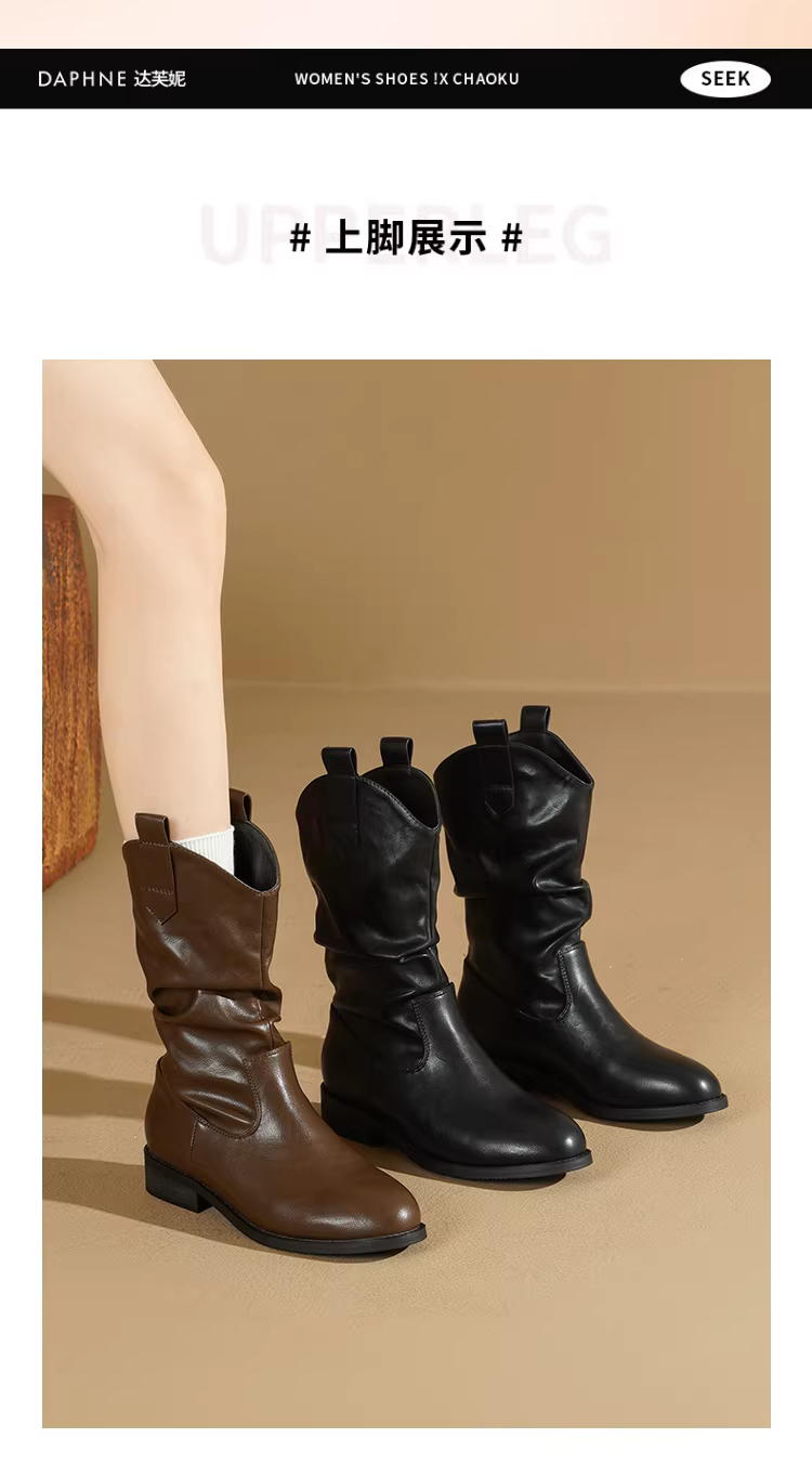- Giày bốt nữ Daphne Maillard Brown 2025 kiểu mới mùa thu, mũi nhọn, cổ ngắn, phong cách cao bồi miền Tây, kiểu Martin