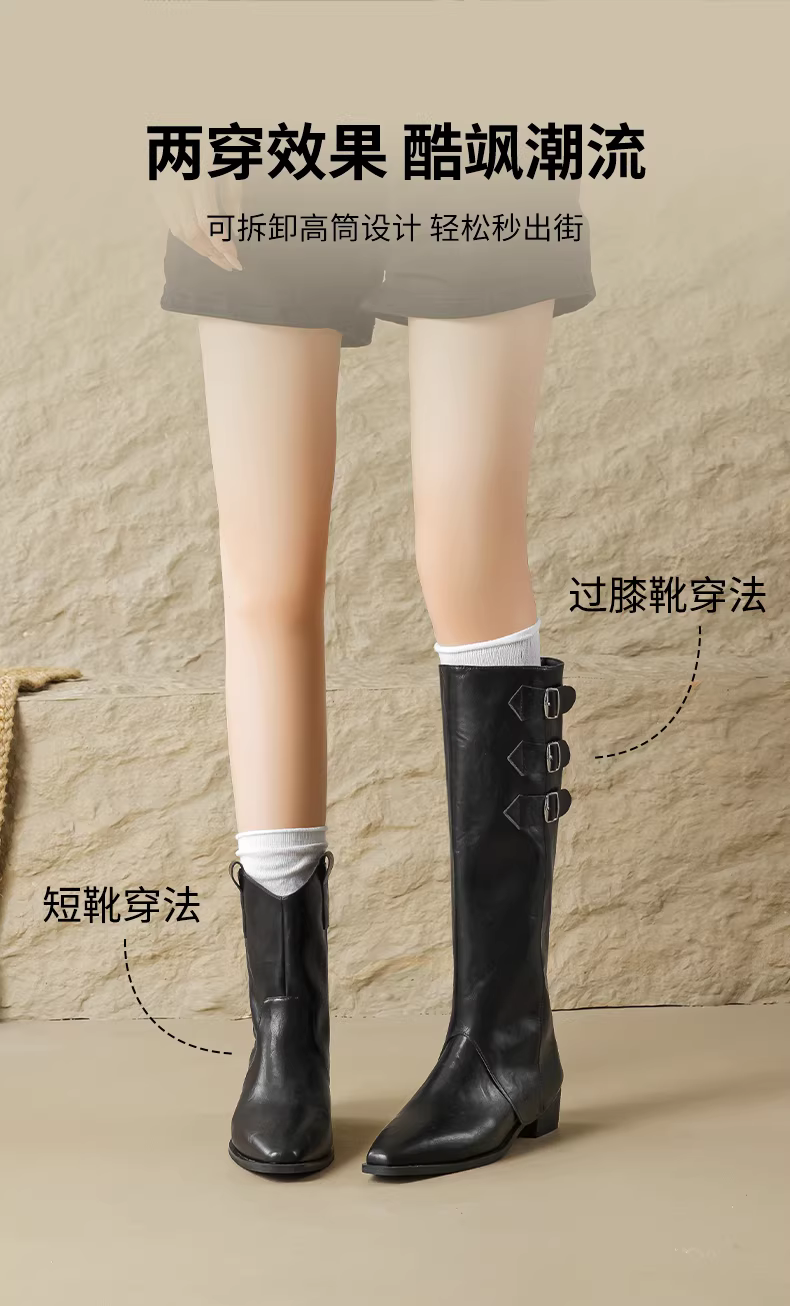 - Giày bốt nữ Daphne màu nâu, kiểu dáng mới mùa đông 2025, lót lông cừu, kiểu dáng ngắn, dễ mang, hai kiểu đeo, mũi nhọn, kiểu cưỡi ngựa