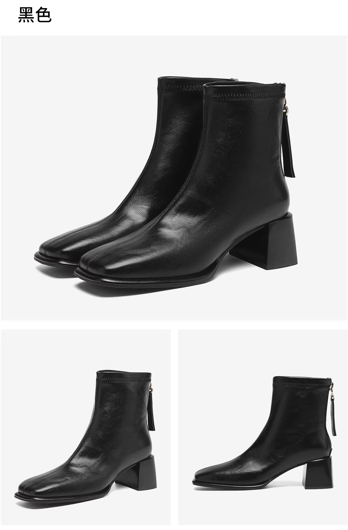- Giày bốt nữ Daphne mũi vuông cổ ngắn 2025, màu đen, mùa đông, gót cao, gót thô, kiểu Martin