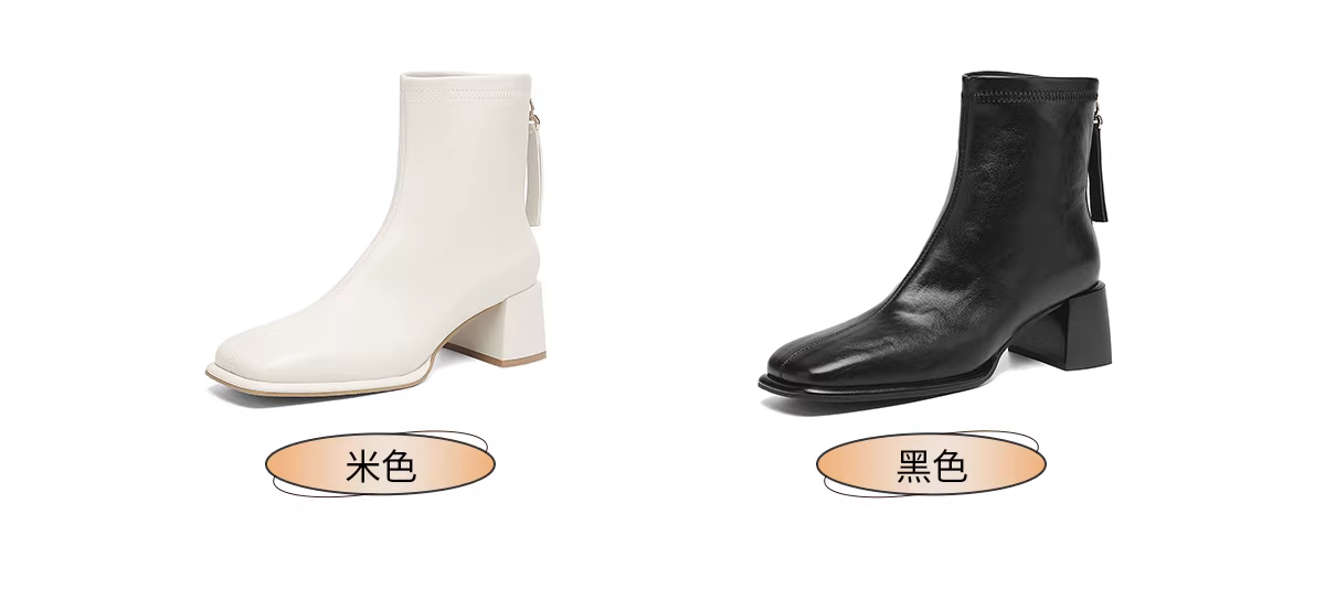 Giày bốt nữ Daphne mũi vuông cổ ngắn 2025, màu đen, mùa đông, gót cao, gót thô, kiểu Martin