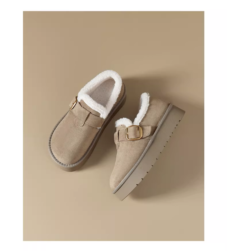 - Giày bốt nữ đế dày bằng cotton, kiểu Birkenstock, lót lông giữ ấm mùa đông 2025, kiểu lười không dây