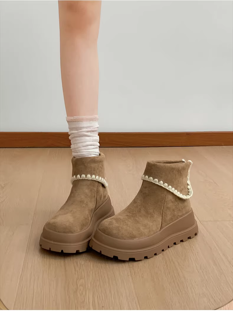 - Giày bốt nữ đế dày kiểu Anh cổ điển màu nâu retro, kiểu thu đông 2025 mới, phối chân váy và nhung, kiểu Birkenstock ngắn