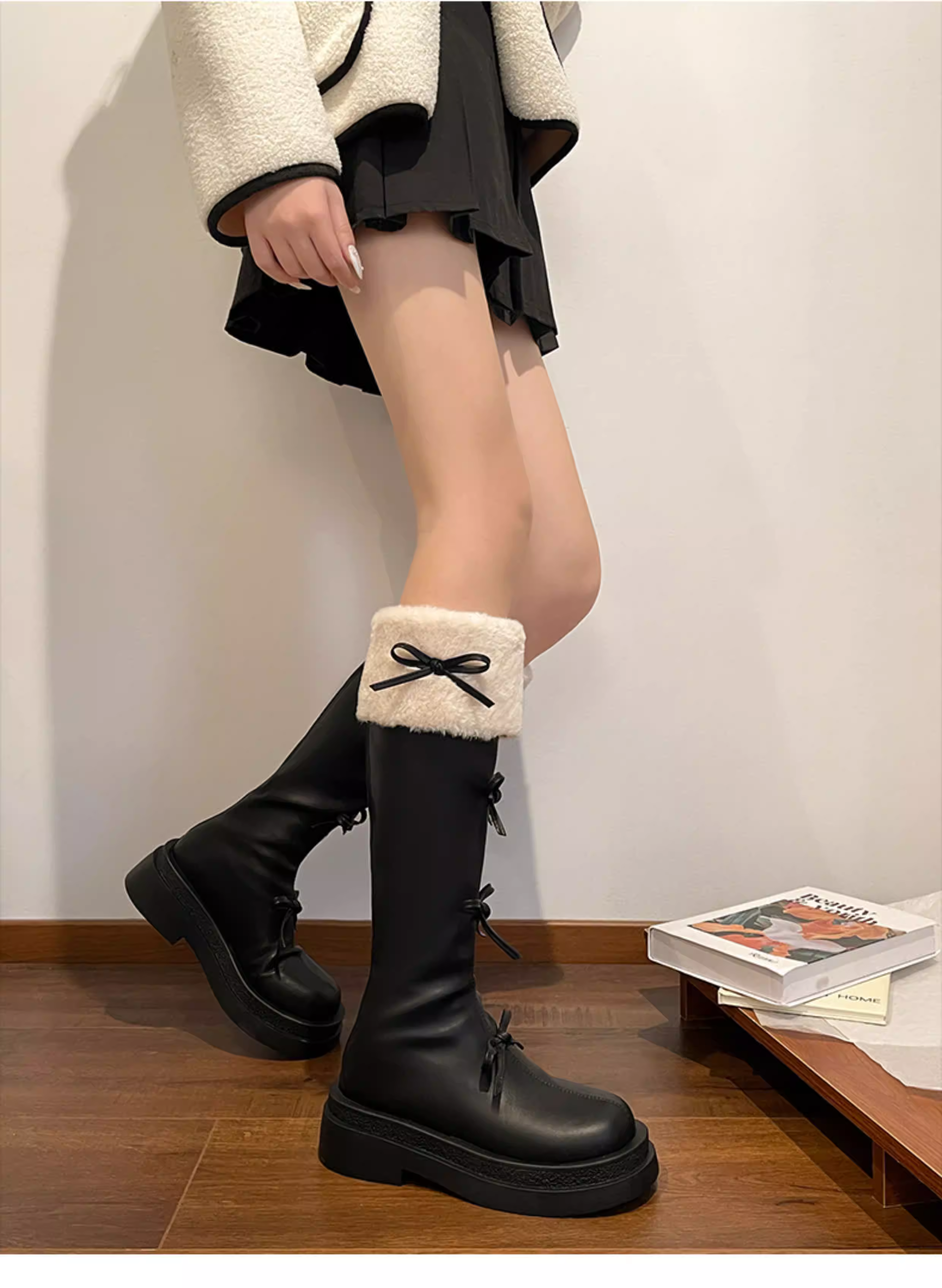 - Giày bốt nữ đế dày kiểu Pháp Brown Melard, bốt dài, mẫu mới thu đông 2025, kiểu dáng ôm dáng, lót lông giữ ấm, phong cách retro.