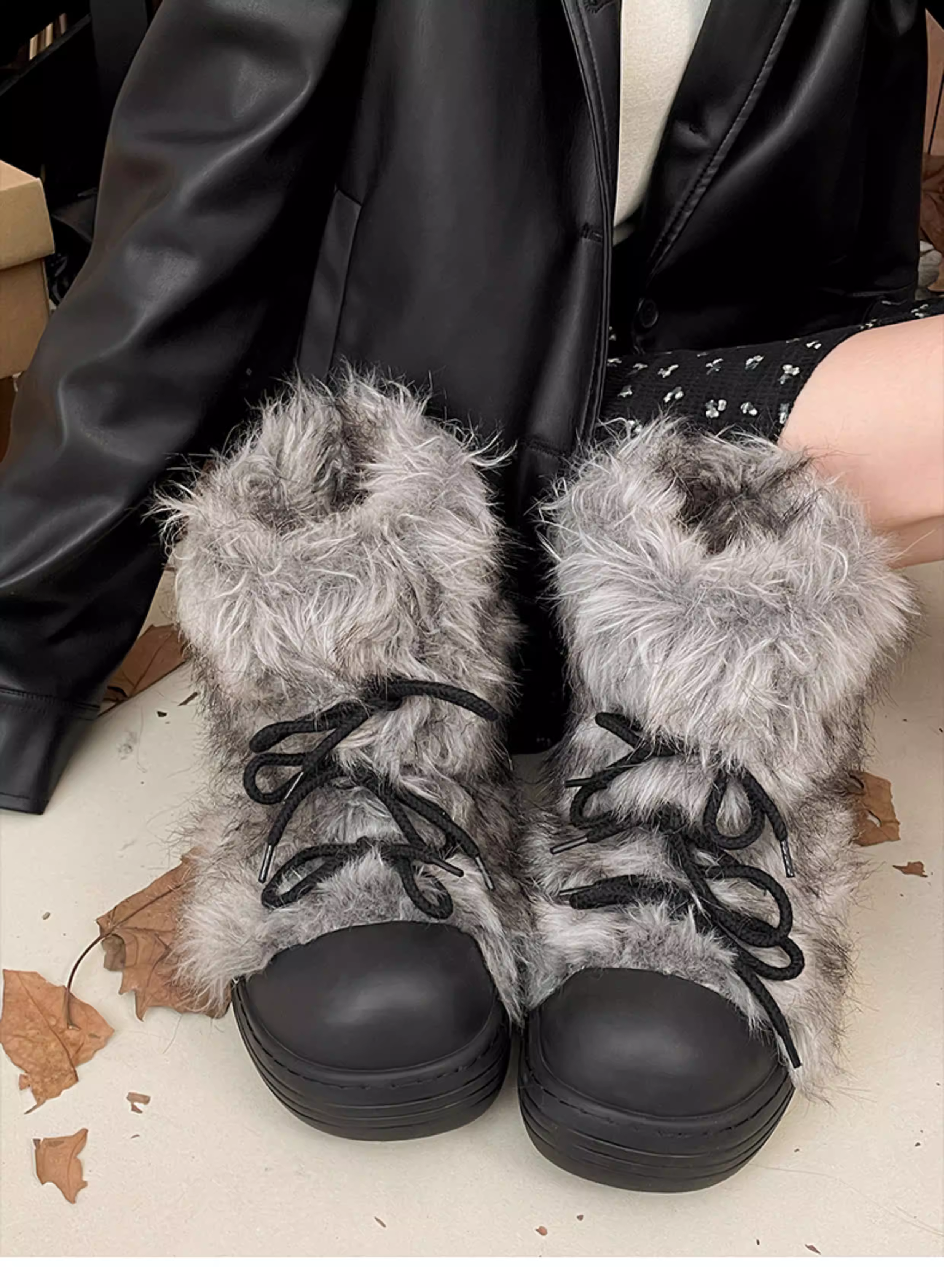 Giày bốt nữ đế dày lót lông cừu tăng chiều cao, mẫu mới mùa đông 2025 giữ ấm chống trơn trượt.