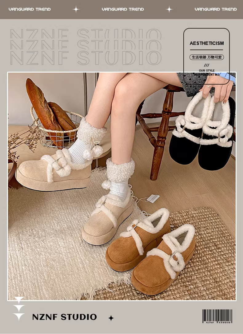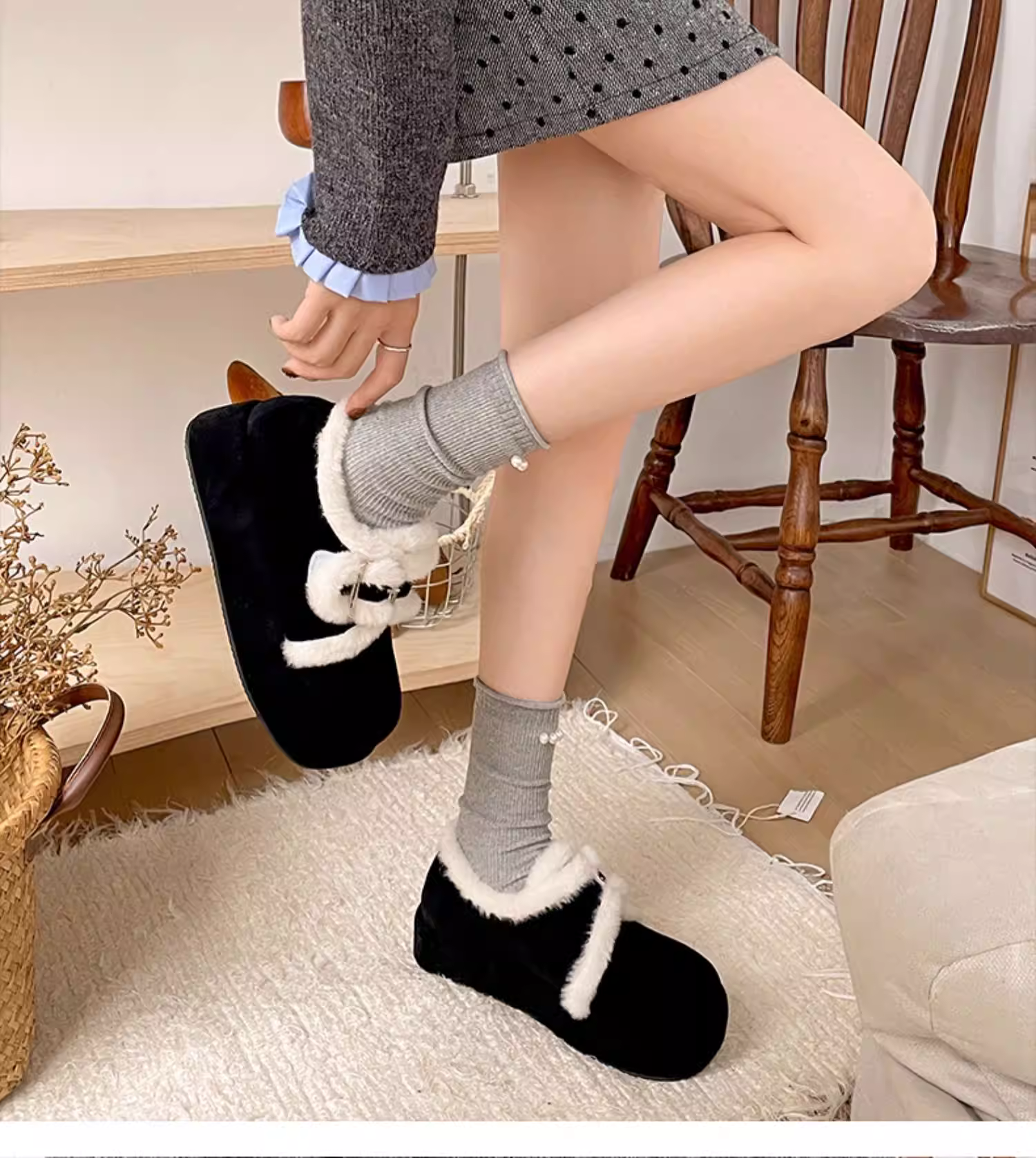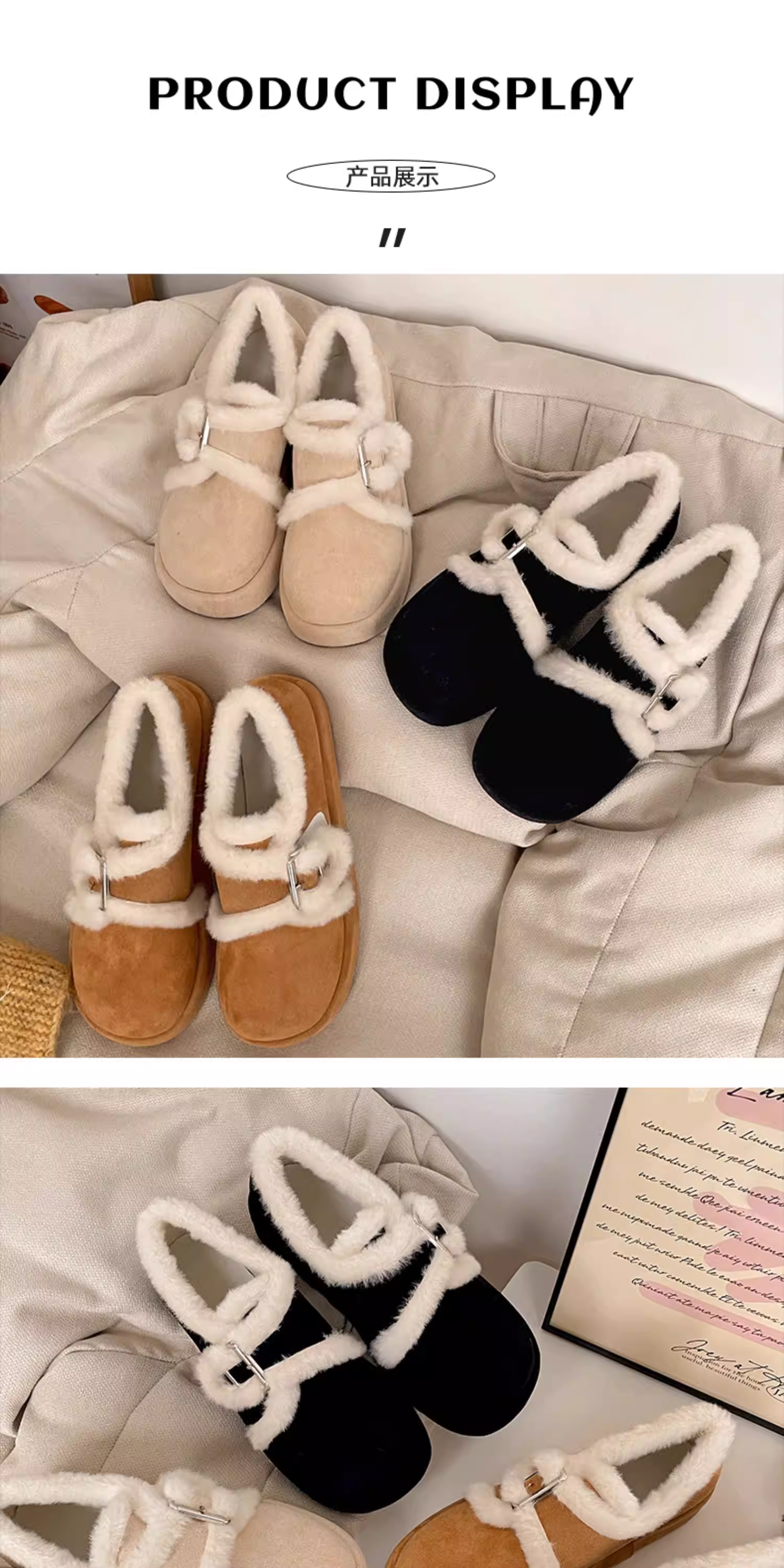 - Giày bốt nữ đế dày lót lông cừu trắng, kiểu Birkenstock giữ ấm mùa đông 2025, tăng chiều cao.