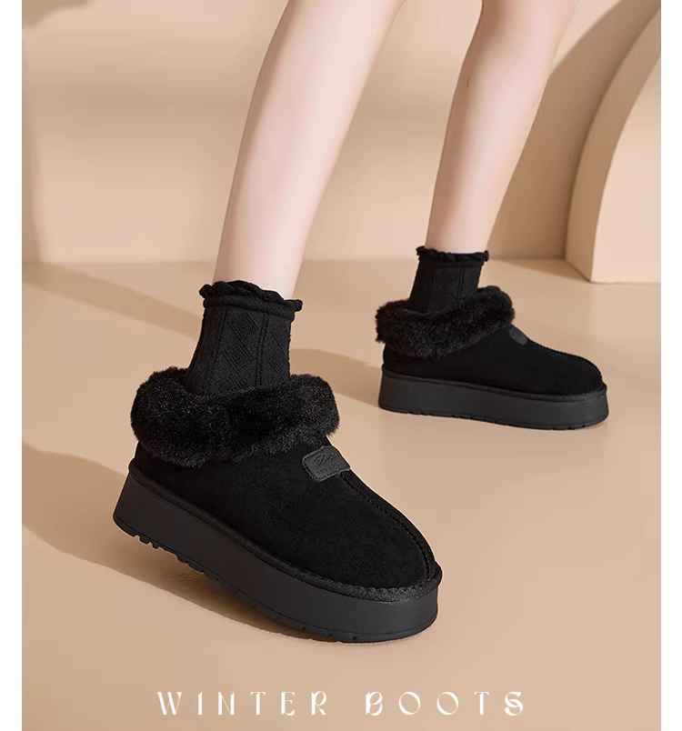 - Giày bốt nữ đế dày mùa đông 2025 kiểu mới, giày lười ngoài trời, giày lông mềm mại có lớp lót lông thú và giày cotton dày dặn dành cho nữ