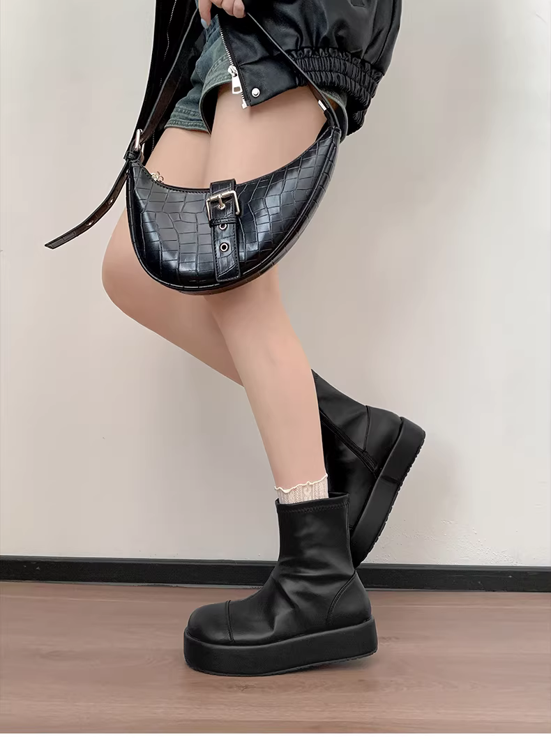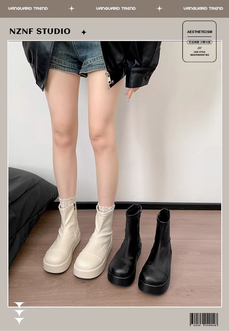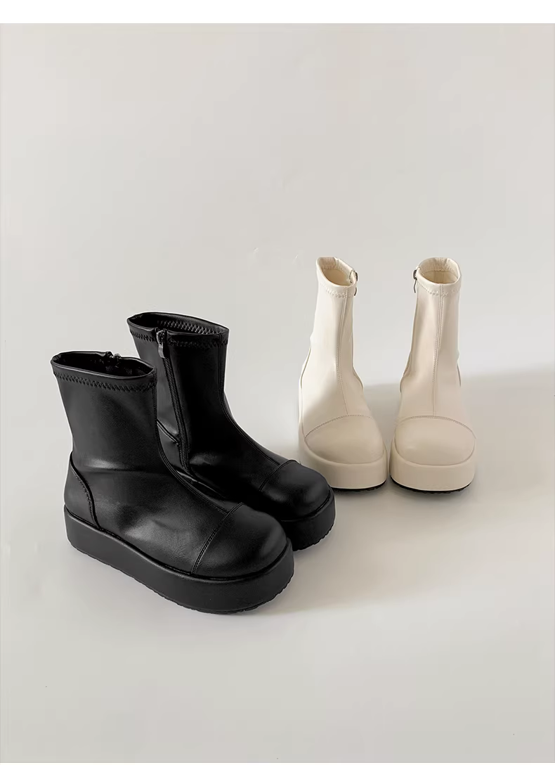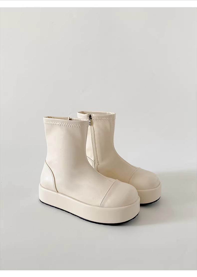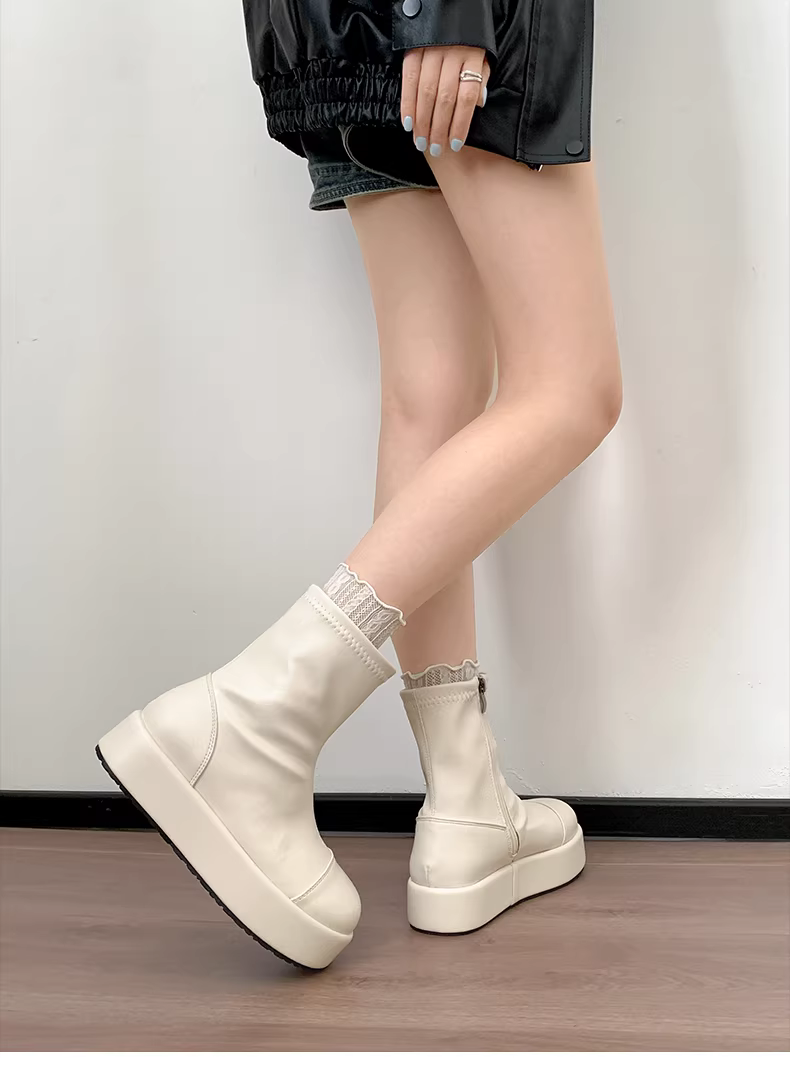 - Giày bốt nữ đế dày phong cách Anh cổ điển màu trắng retro, kiểu mới thu đông 2025, phối chân váy giúp tăng chiều cao và thon gọn, kiểu bốt ngắn.
