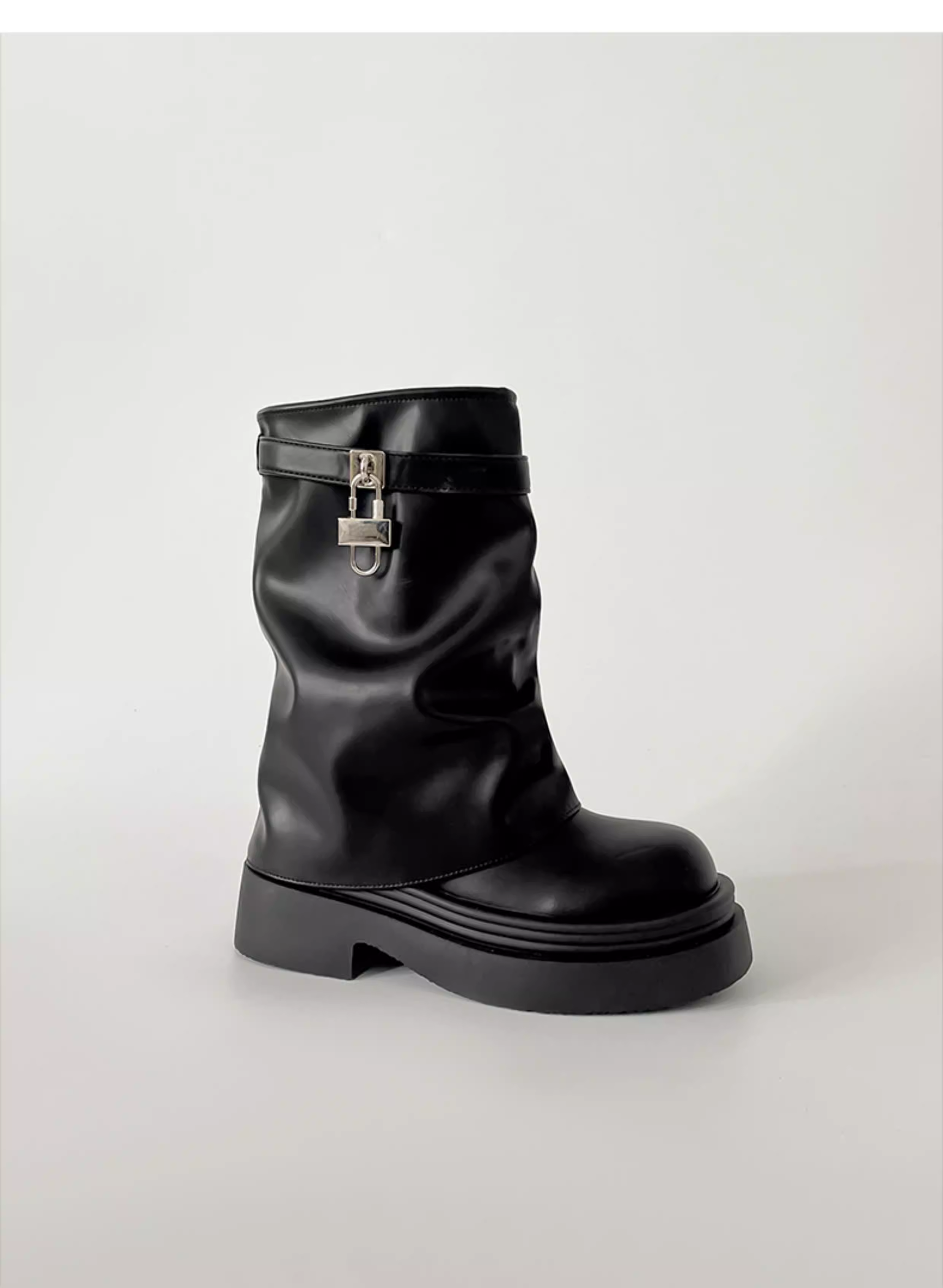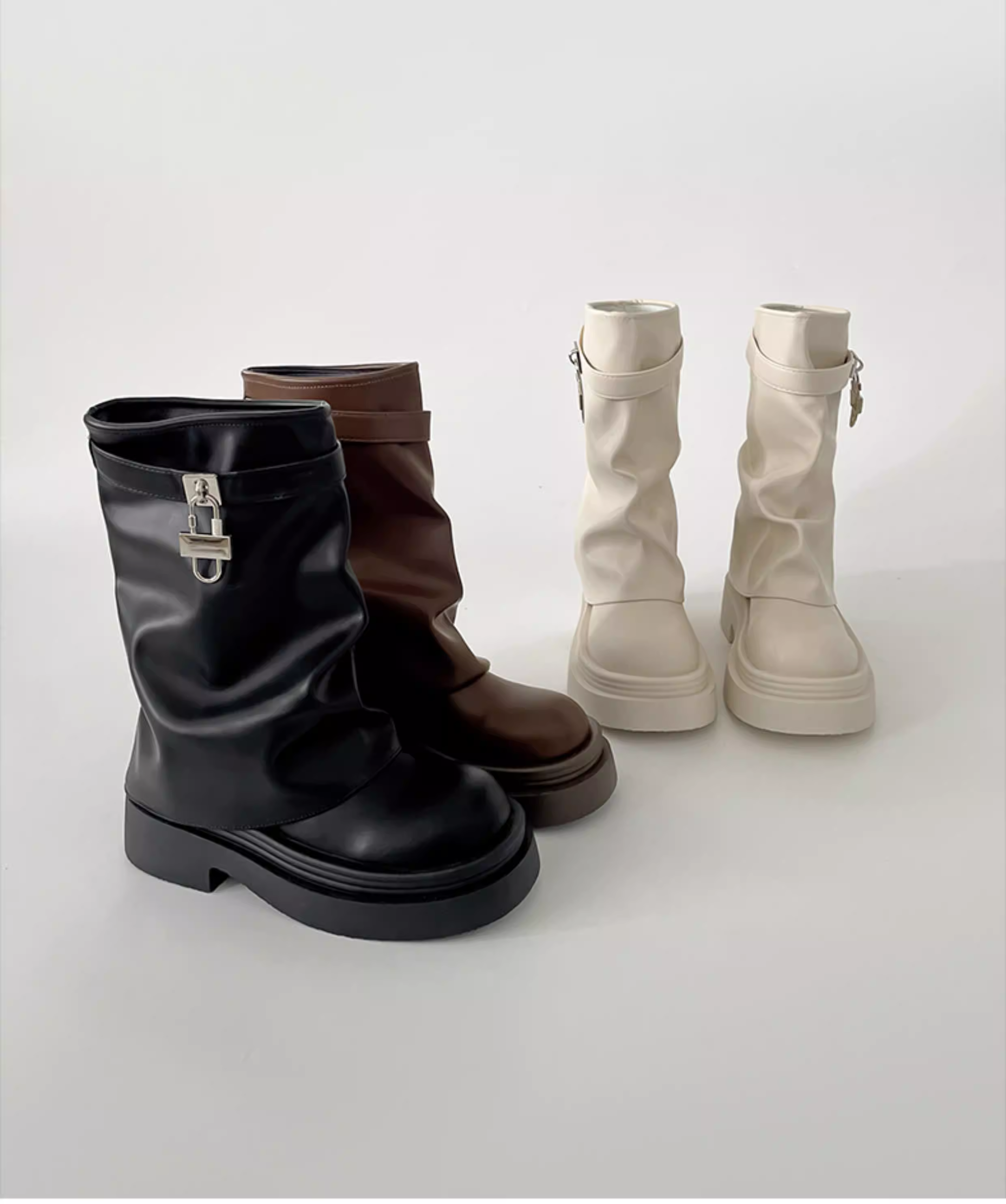 - Giày bốt nữ đế dày phong cách Anh quốc cao cấp màu trắng cổ điển, kiểu dáng thu đông 2025 mới, phối cùng chân váy và đa năng.