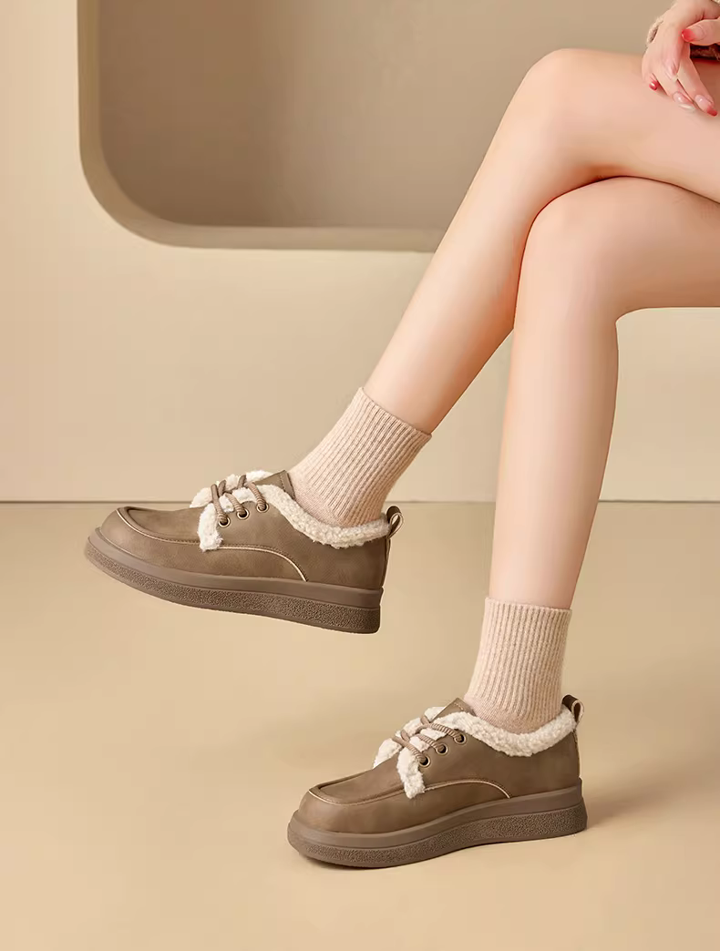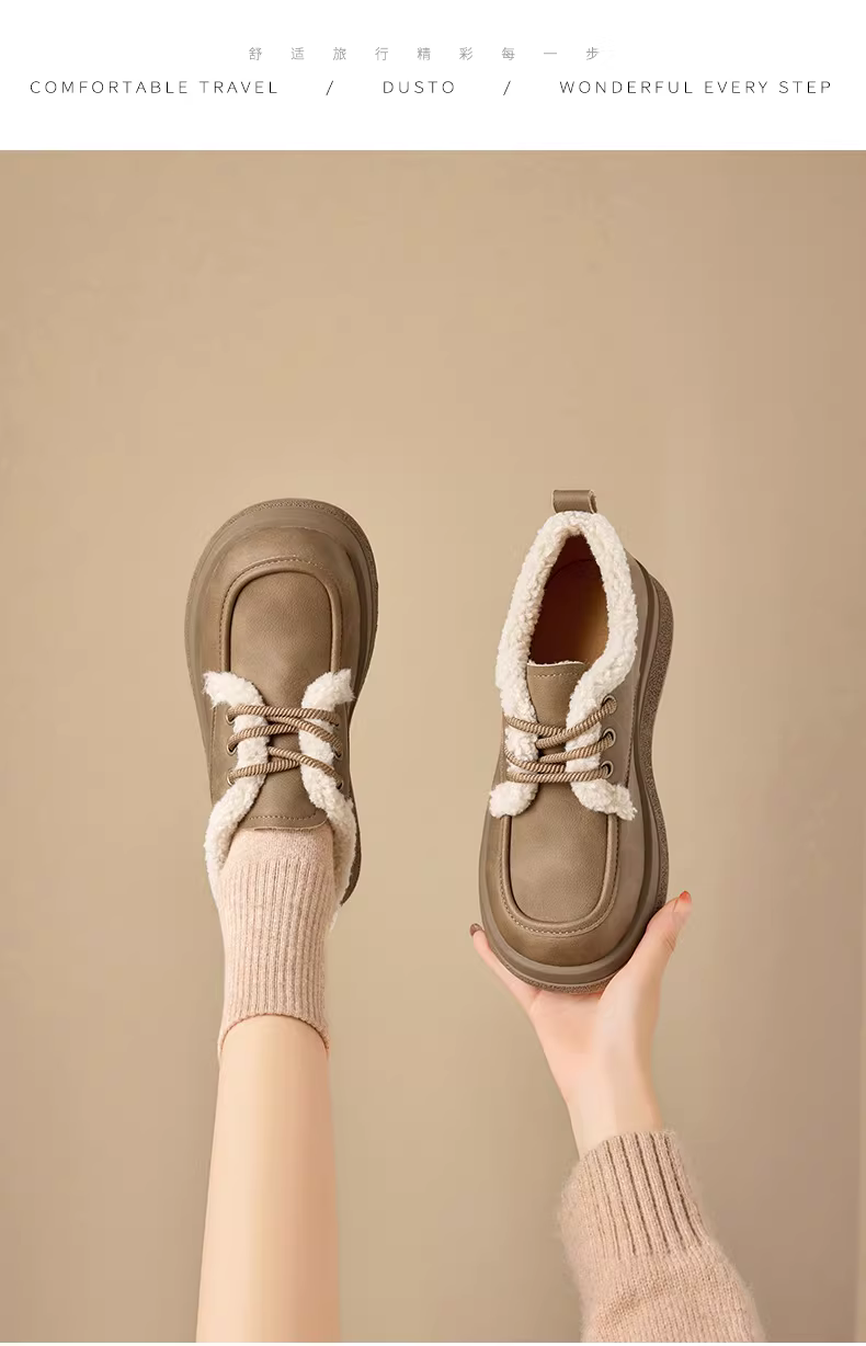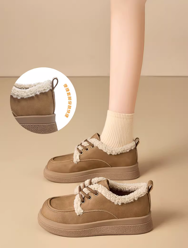 - Giày bốt nữ lót lông cừu giữ ấm mùa đông 2025 kiểu mới, giày bông dày đế dày kiểu Birkenstock, giày lười