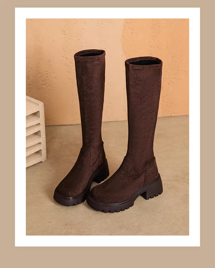 - Giày bốt thon gọn Dadong dành cho nữ, mẫu mới thu đông 2025, gót dày, bốt cao cổ, đế dày, bốt đen dài.