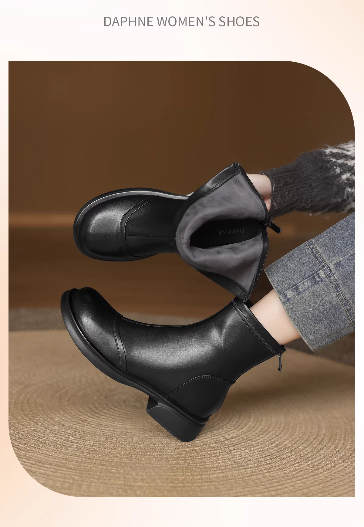 - Giày bốt trắng Daphne, bốt ngắn nữ mùa đông 2025 kiểu mới, lót lông, gót dày, kiểu Martin, bốt ôm dáng, bốt Chelsea