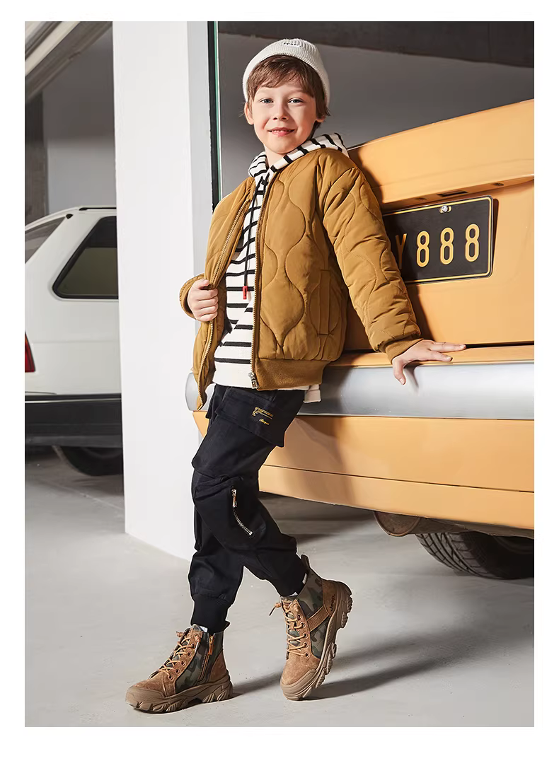 - Giày bốt trẻ em Jeep, bốt ngắn không thể phá hủy, giày đi bộ ngoài trời, bốt da mới mùa thu đông 2025, bốt bé trai