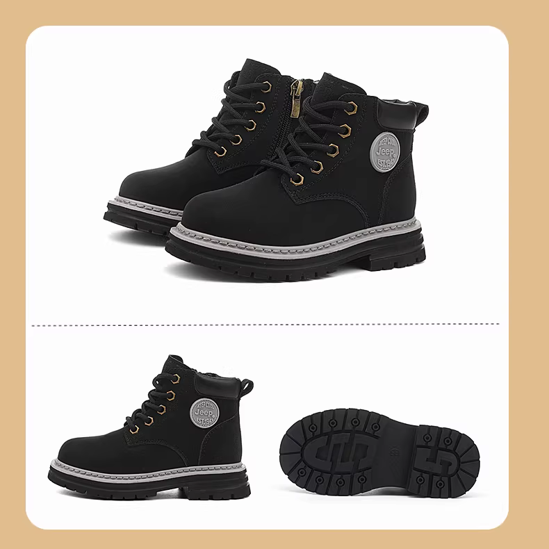 - Giày bốt trẻ em Jeep, bốt trẻ em gái, giày đi bộ đường dài và leo núi sa mạc phong cách mới mùa thu, bốt màu vàng lớn dành cho bé trai ngoài trời