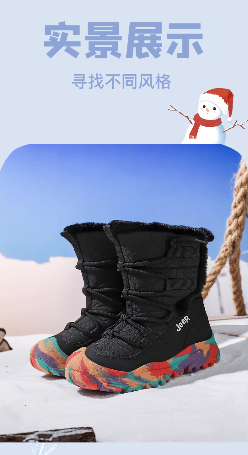 - Giày bốt tuyết ấm áp cho bé gái, lót lông cừu, giày cotton trẻ em, chống thấm nước, chống trơn trượt, mẫu mới 2025, dày dặn