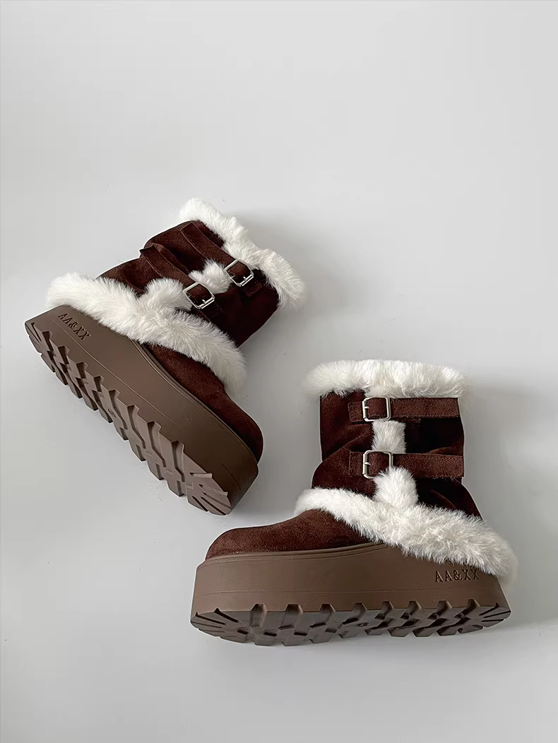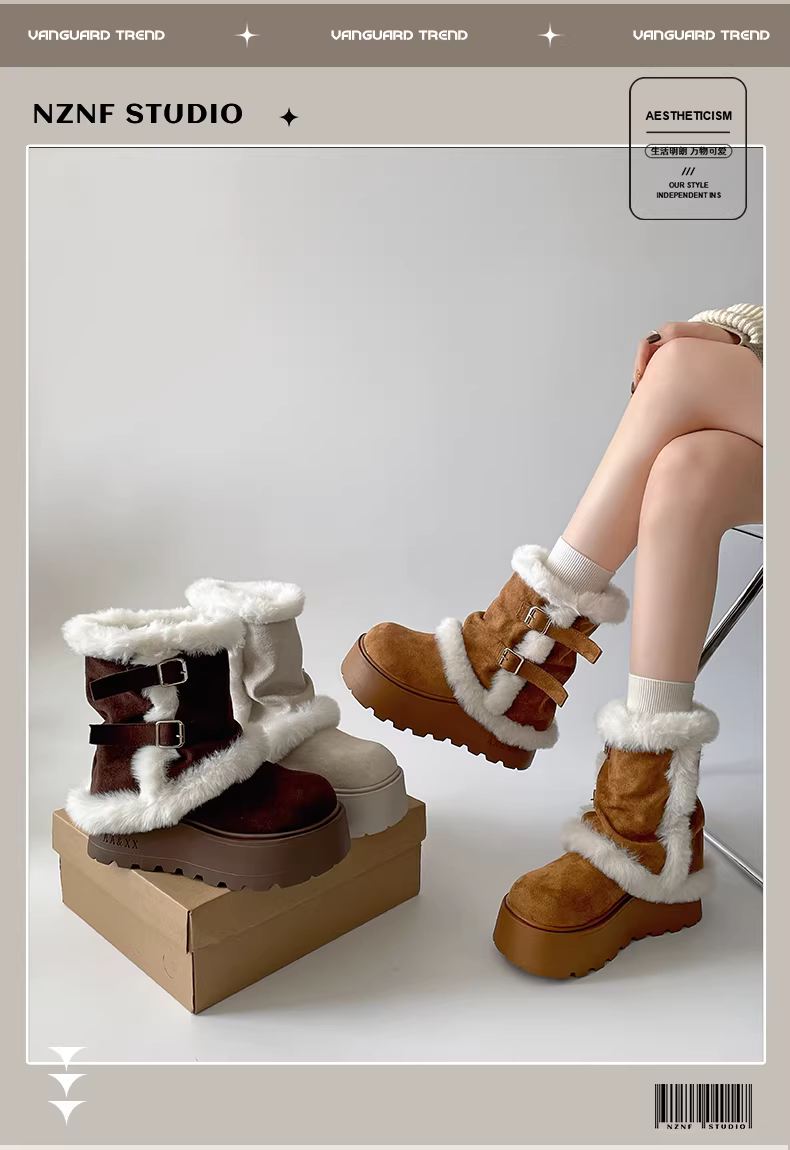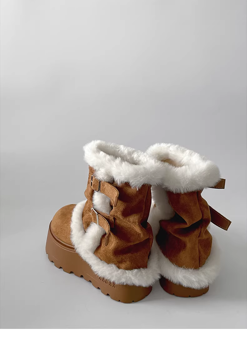 - Giày bốt tuyết cổ điển đế dày lót lông cừu ấm áp dành cho nữ, giày cotton kiểu Birkenstock lông thú mùa đông mới 2025.